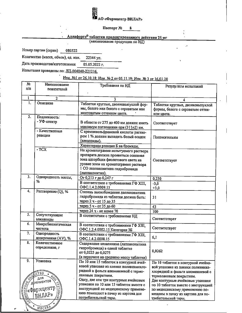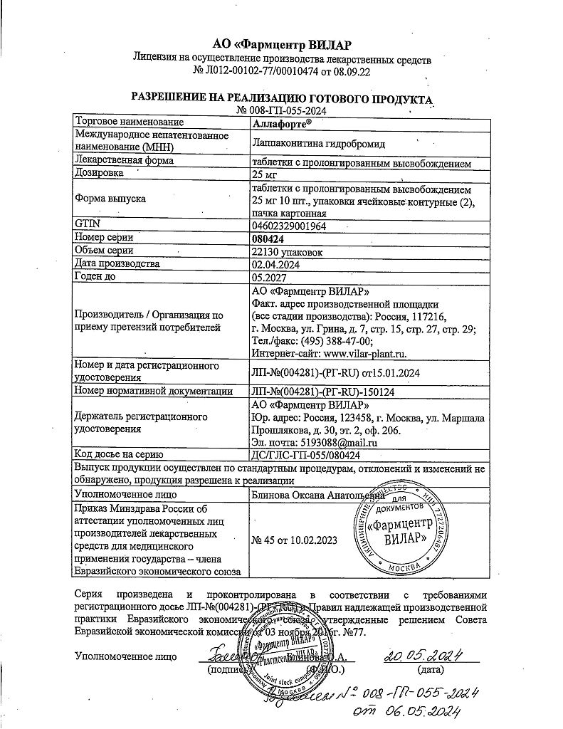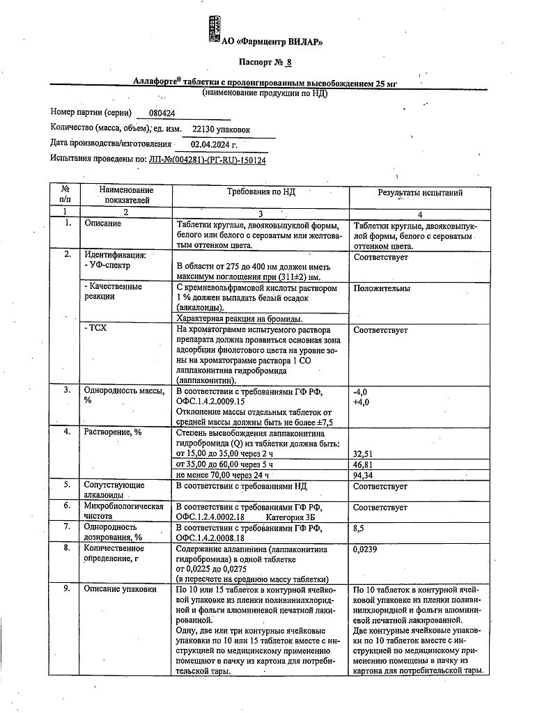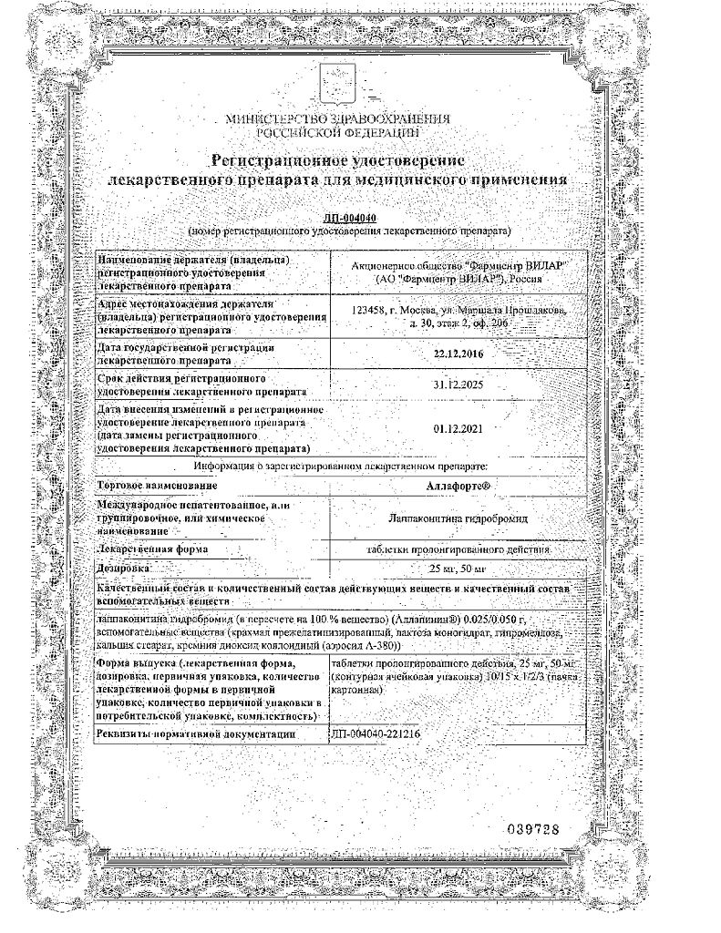 • Срок годности Аллафорте - 3 года. Не применять по истечении срока годности.