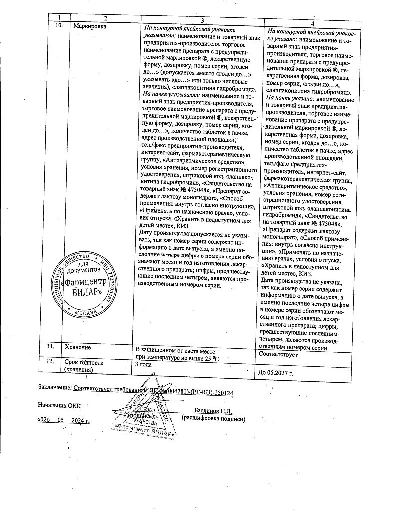 Действующее вещество: Лаппаконитина гидробромид