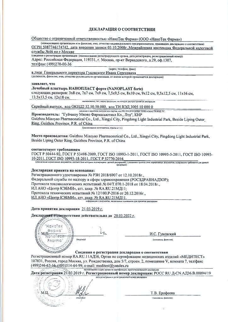 • Производителем Нанопласт Форте является - Гуйчжоу Мяояо