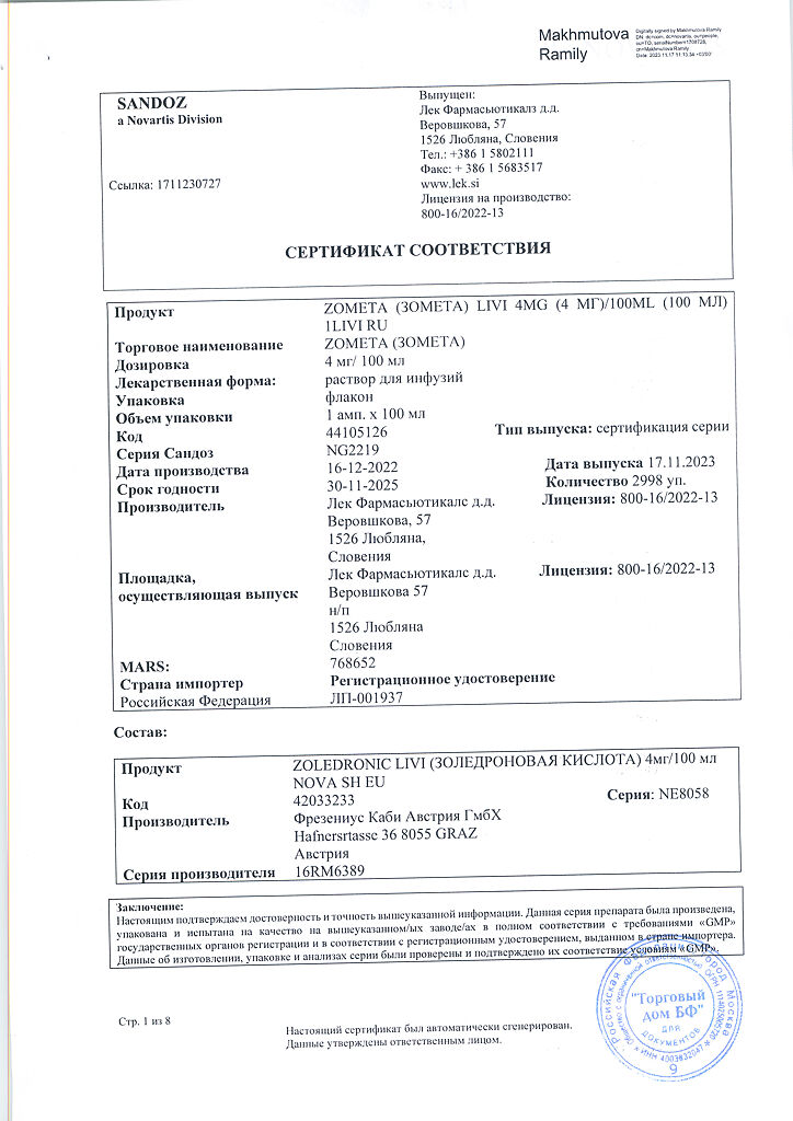Производитель: Новартис Фарма Штейн АГ, Швейцария