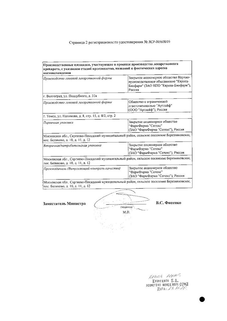 Производитель: К.О.Ромфарм Компани С.Р.Л., Румыния