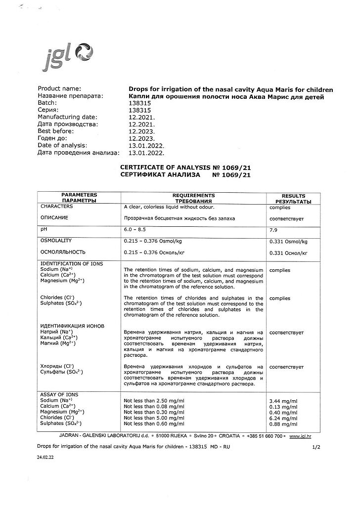 Производитель: ЯДРАН-ГАЛЕНСКИ ЛАБОРАТОРИЙ а.о., Хорватия