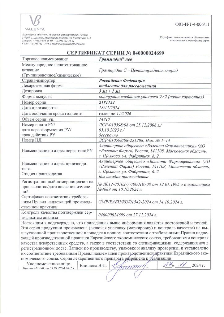 Производитель: Валента Фарм АО, Россия