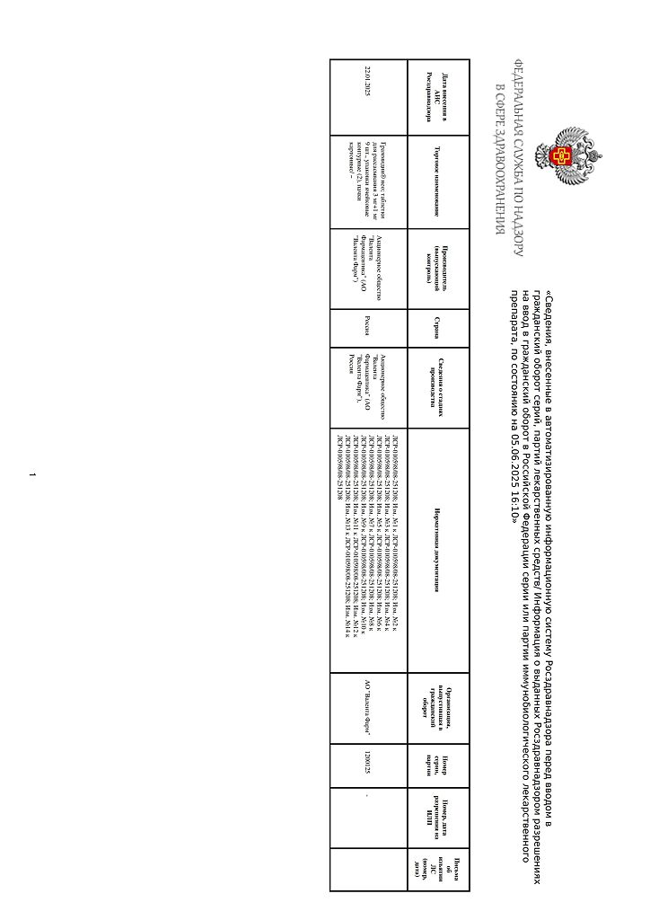Страница носит информационный характер о наличии препаратов. Перед назначением и применением проконсультируйтесь с врачом