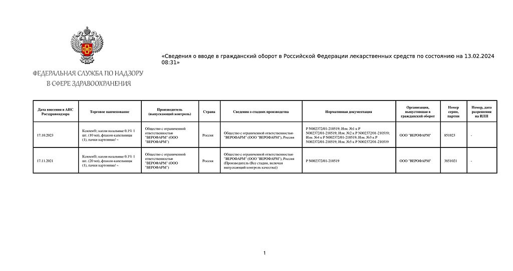 Страница носит информационный характер о наличии препаратов. Перед назначением и применением проконсультируйтесь с врачом