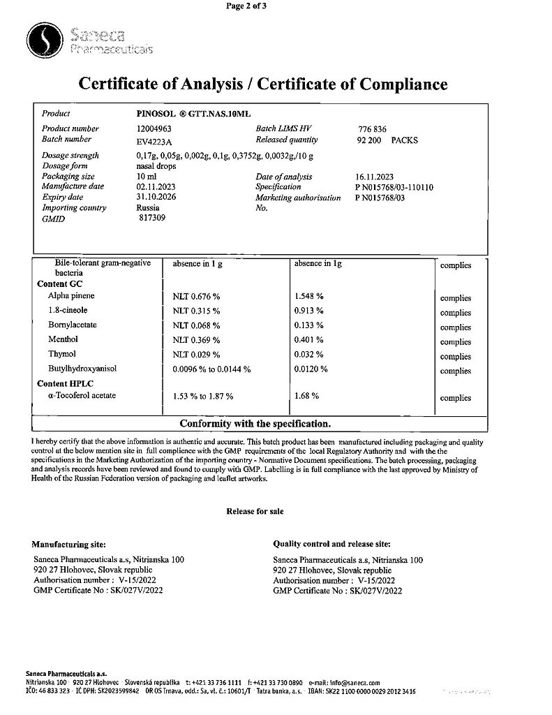 • Информацию об акциях и скидках на Пиносол уточняйте на нашем сайте.