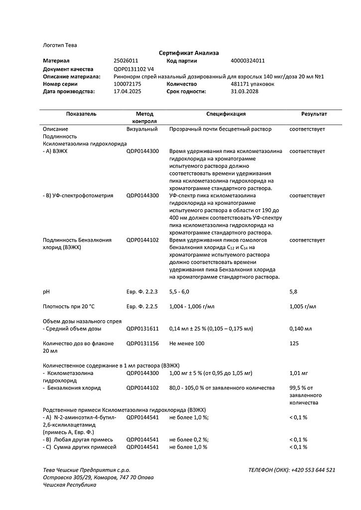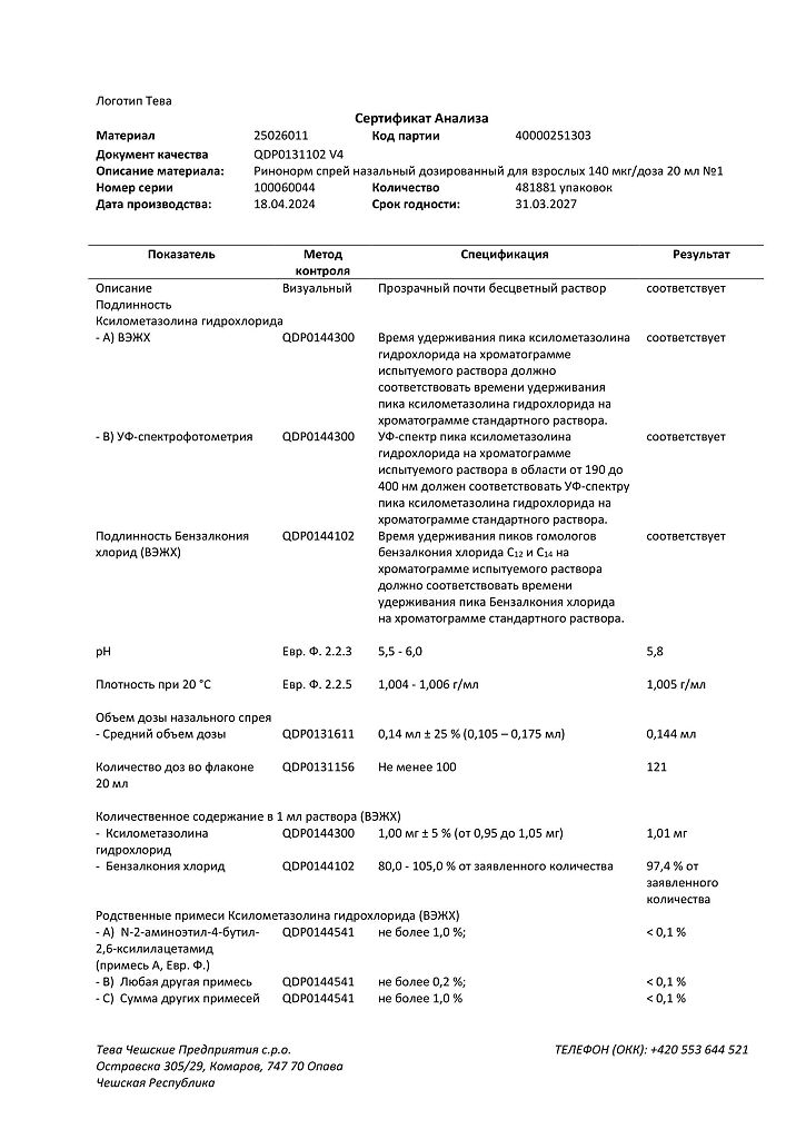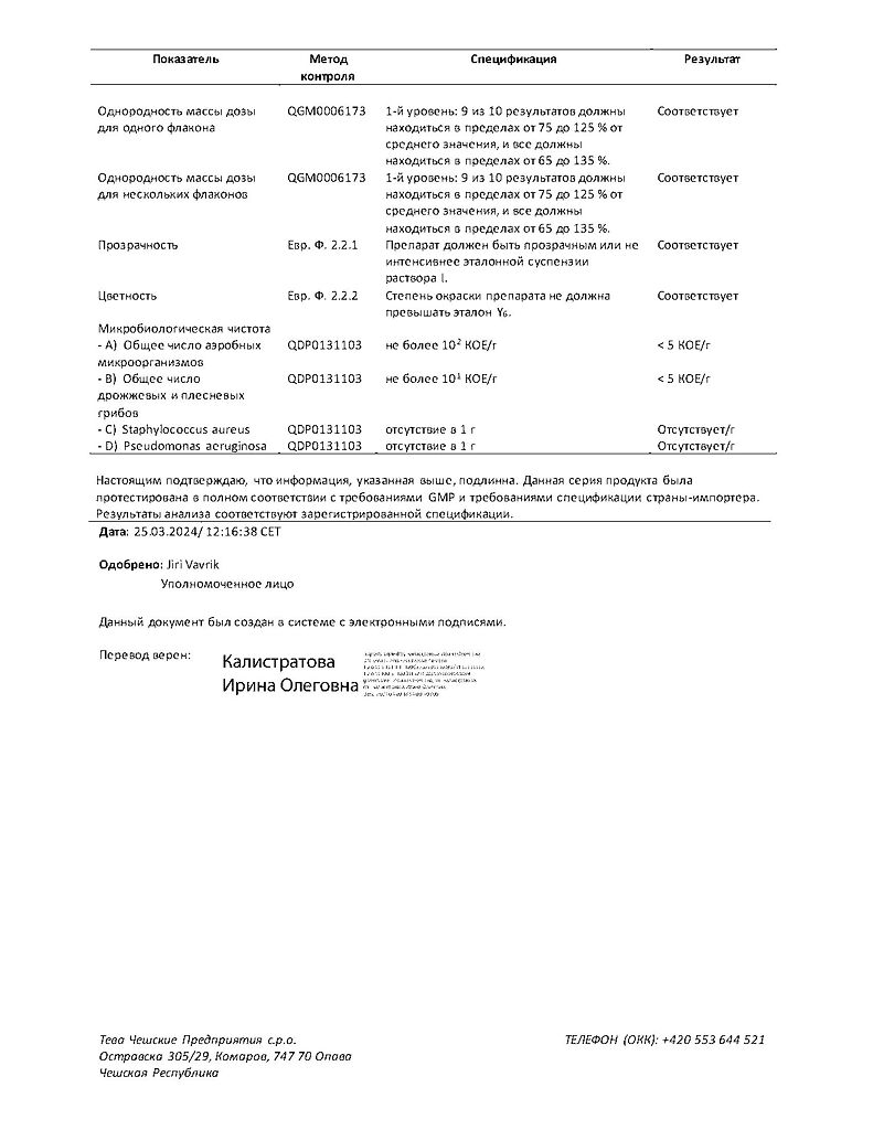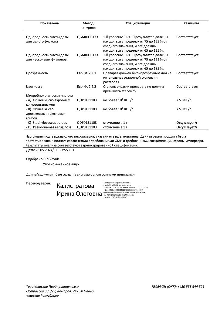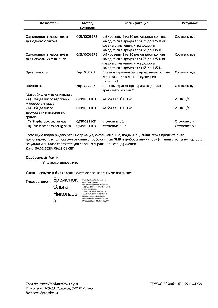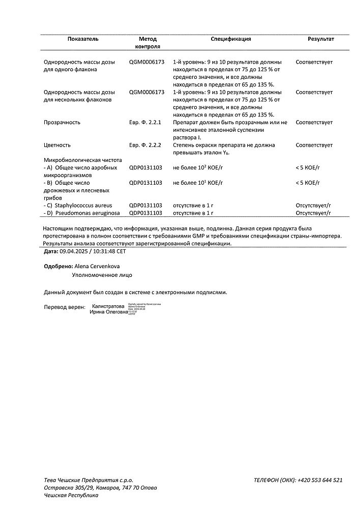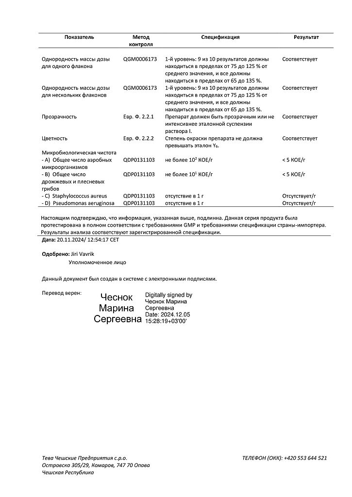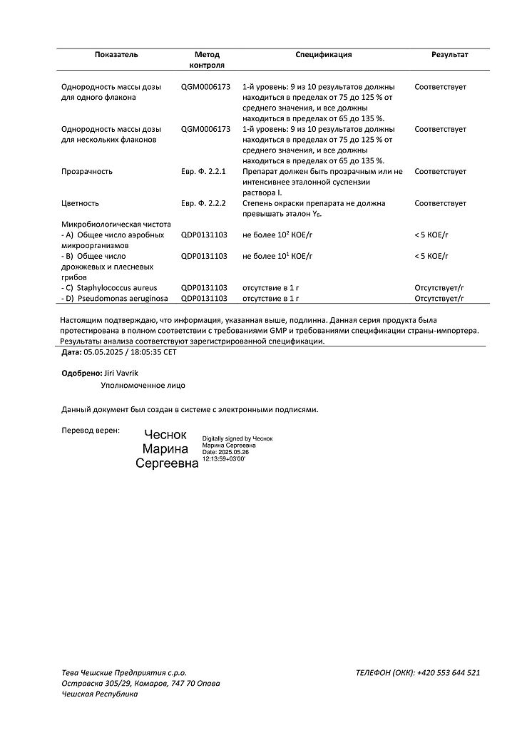 Производитель: Тева Чешские Предприятия с.р.о., Чешская Республика