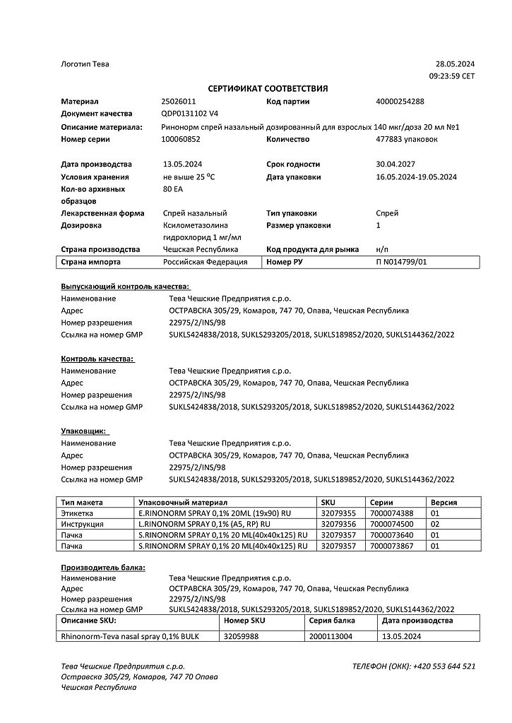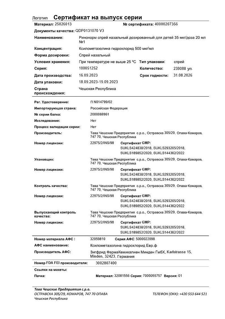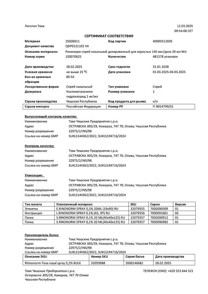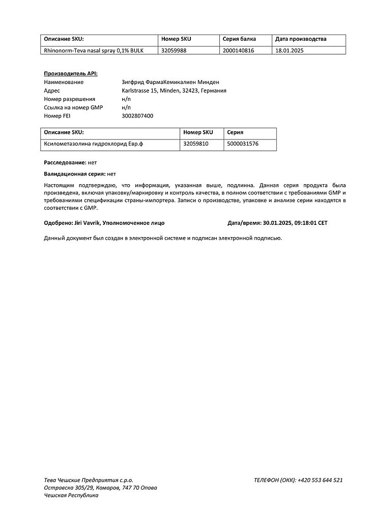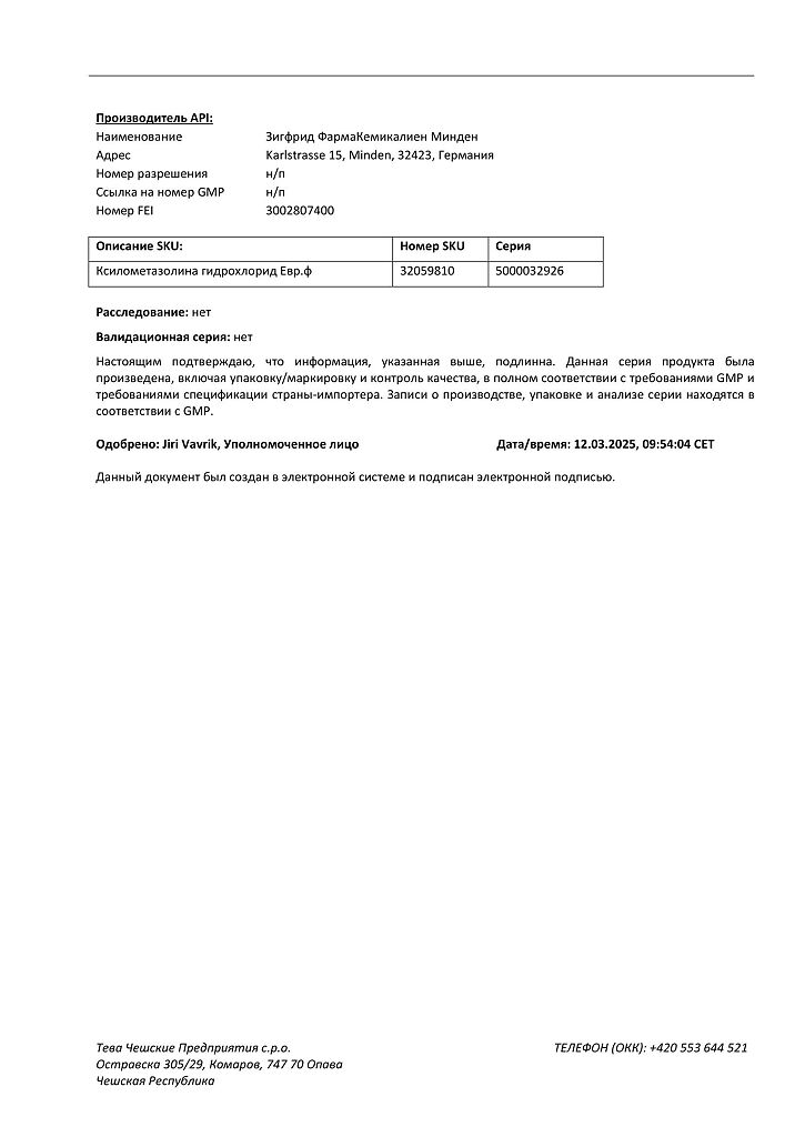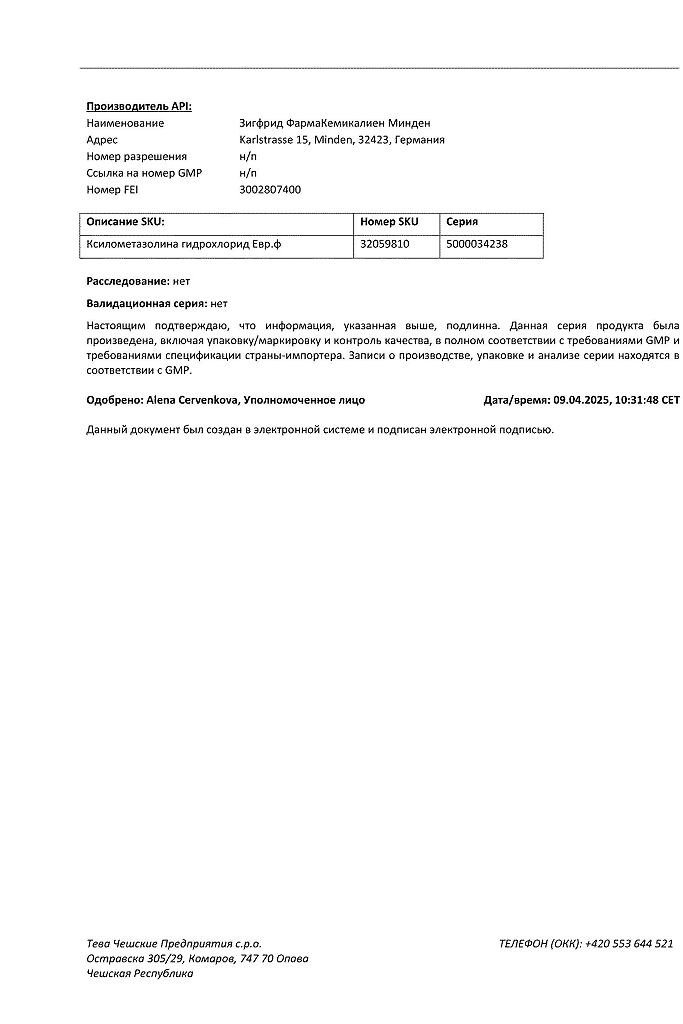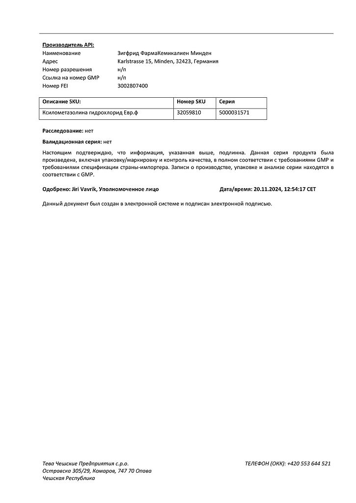 Производитель: Тева Чешские Предприятия с.р.о., Чешская Республика