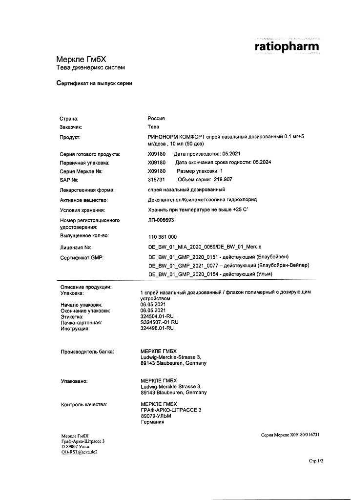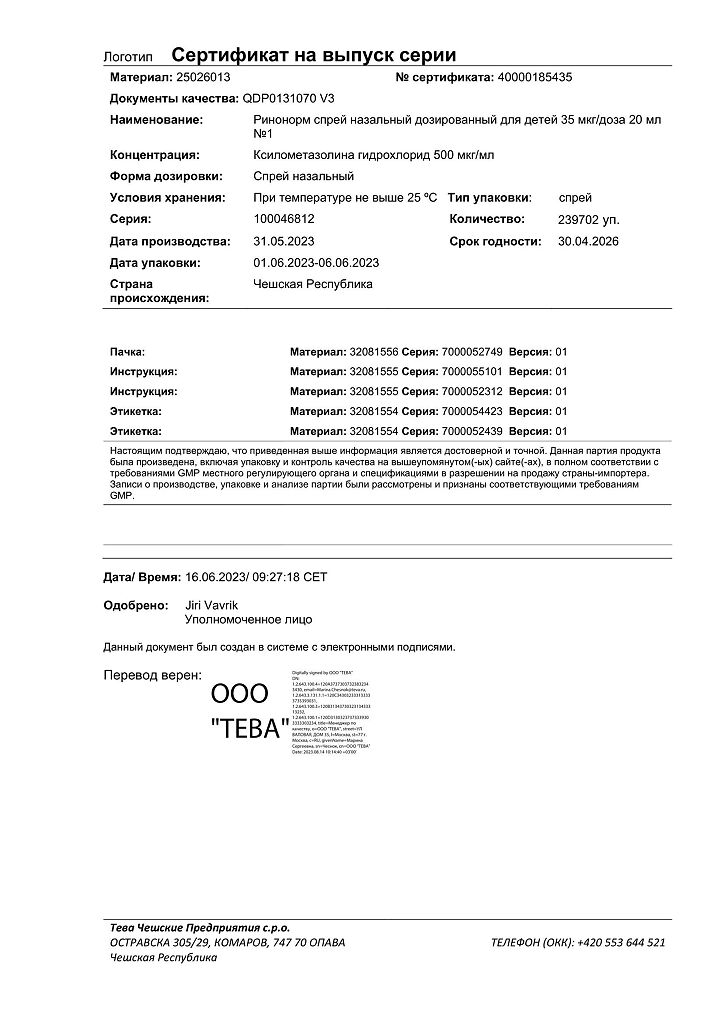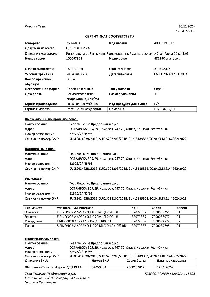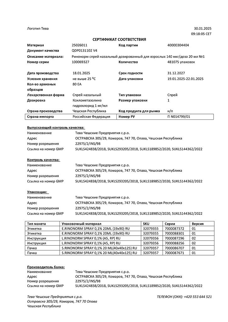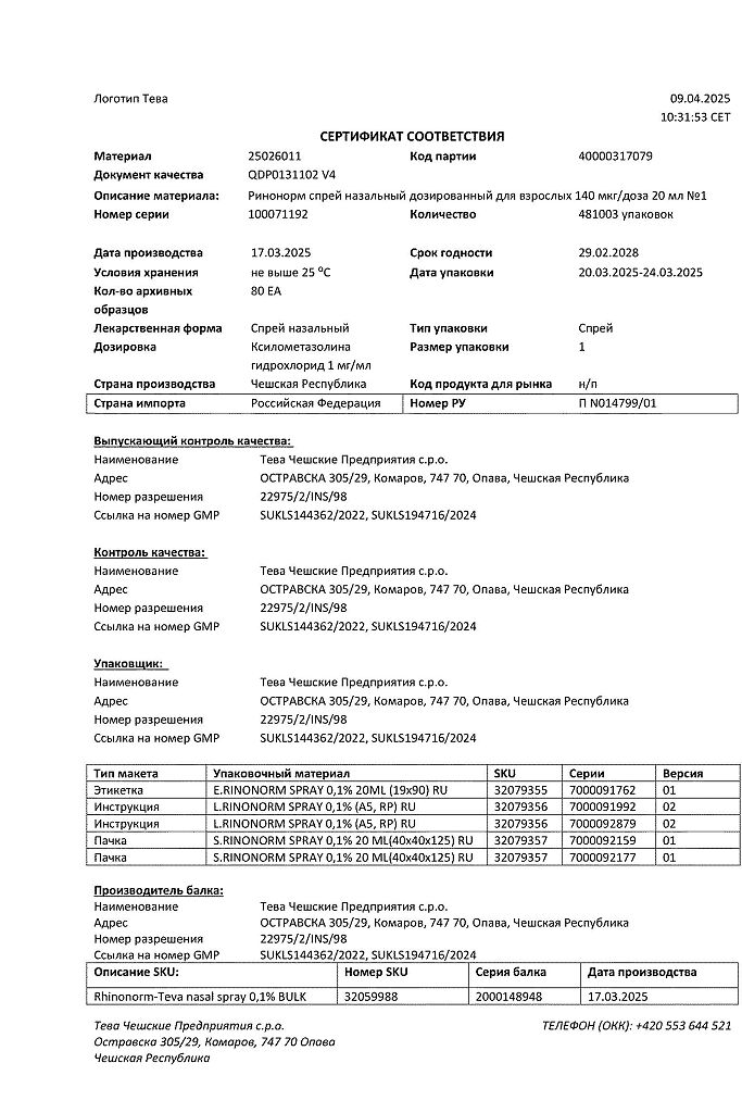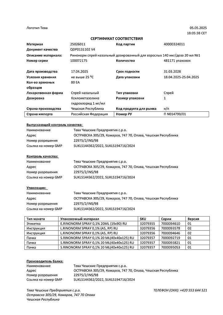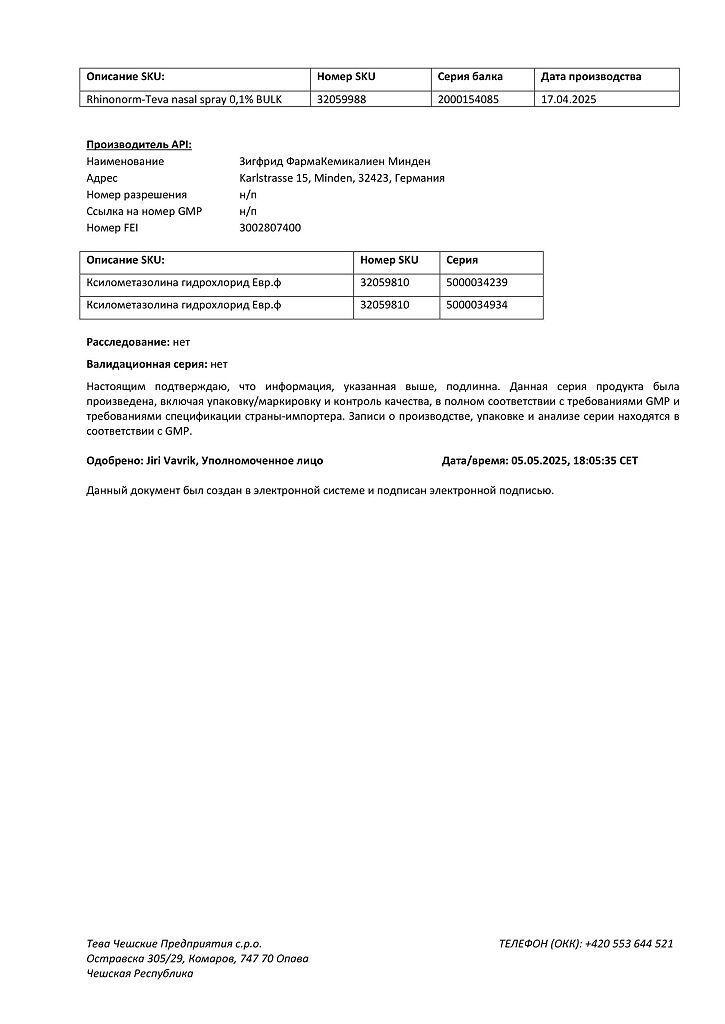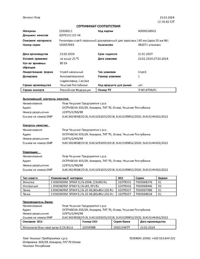 Производитель: Тева Чешские Предприятия с.р.о., Чешская Республика