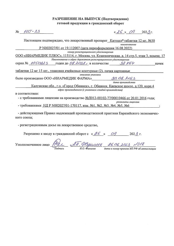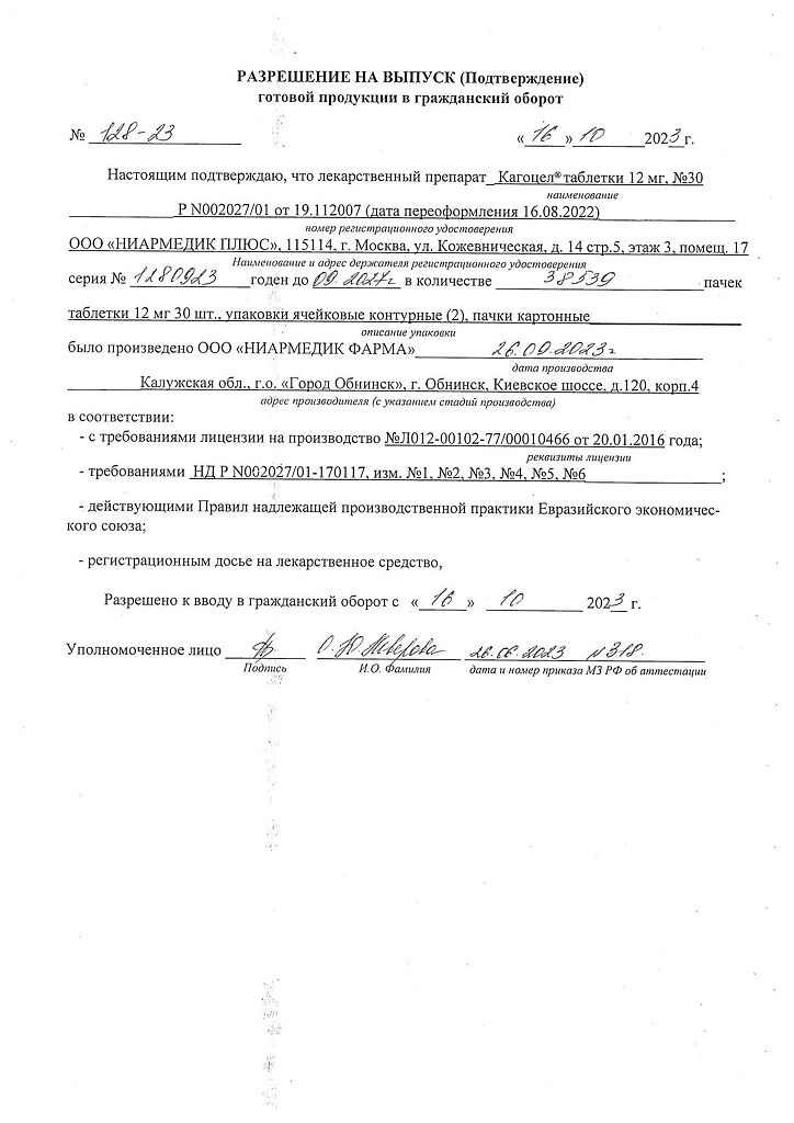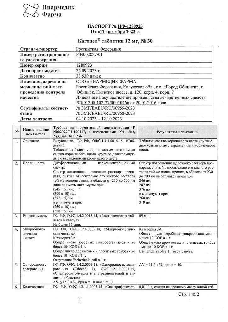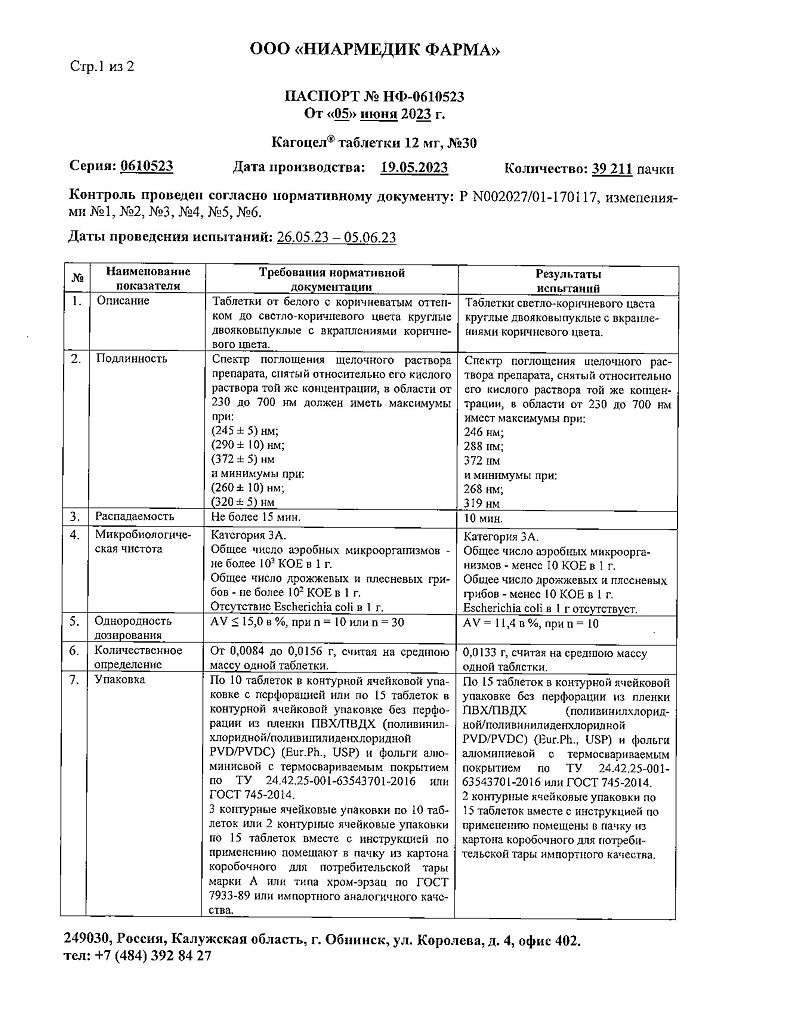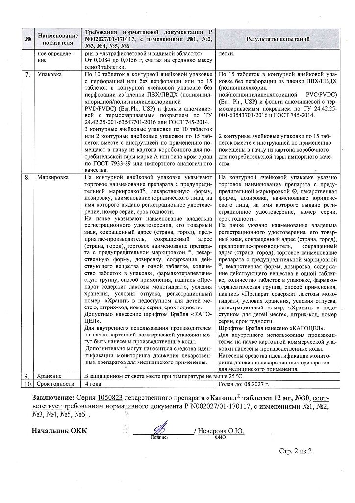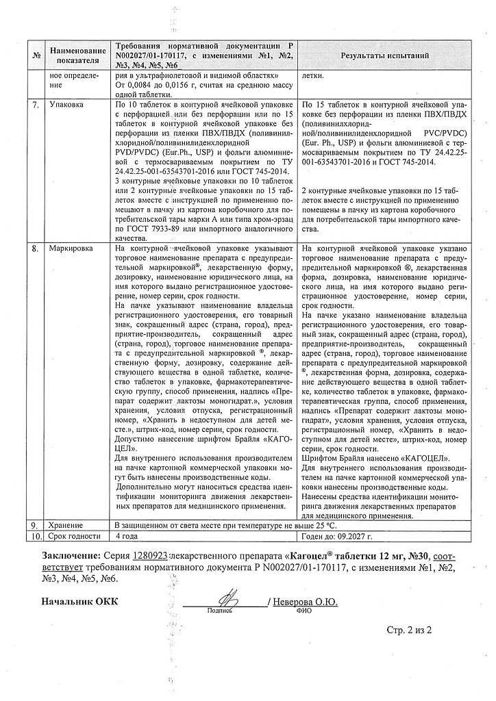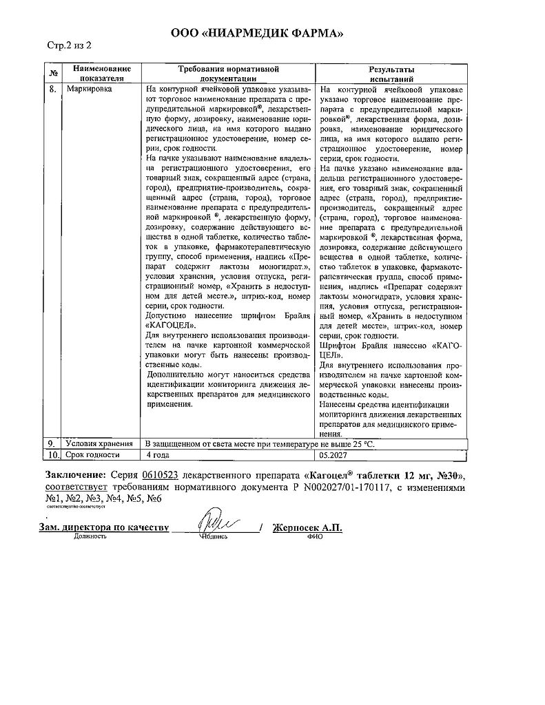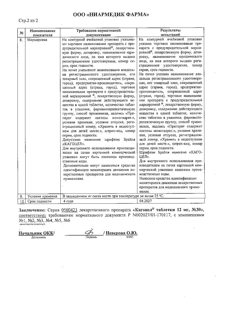 • Срок годности Кагоцел - 2 года.