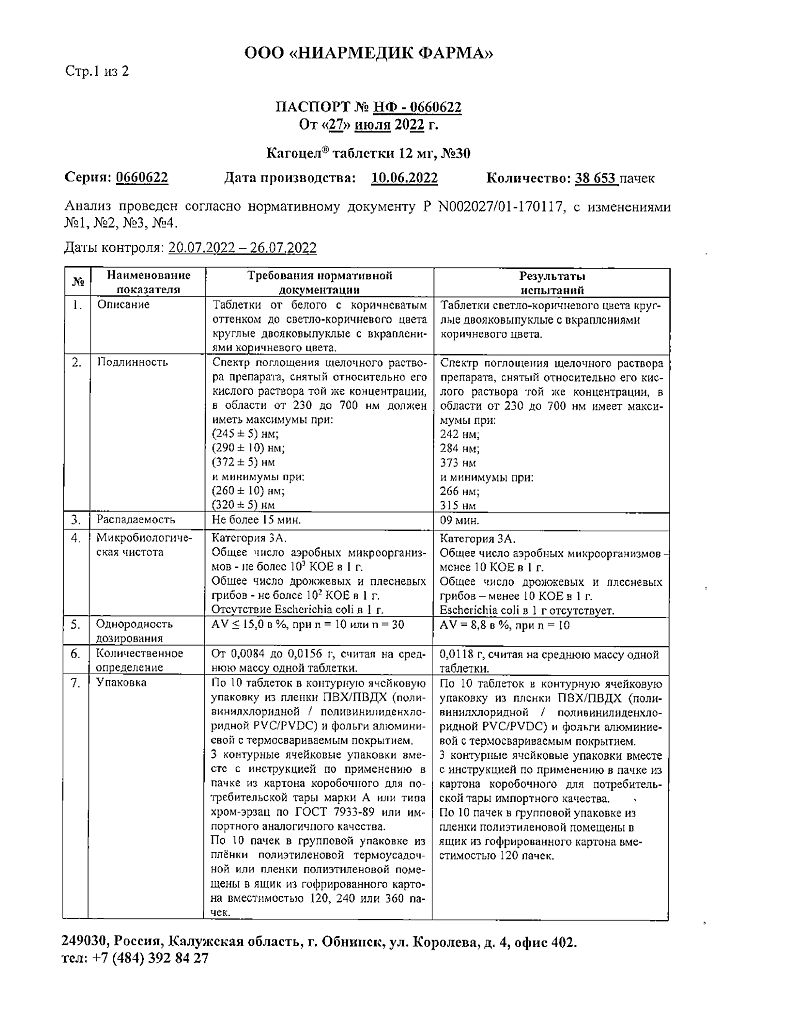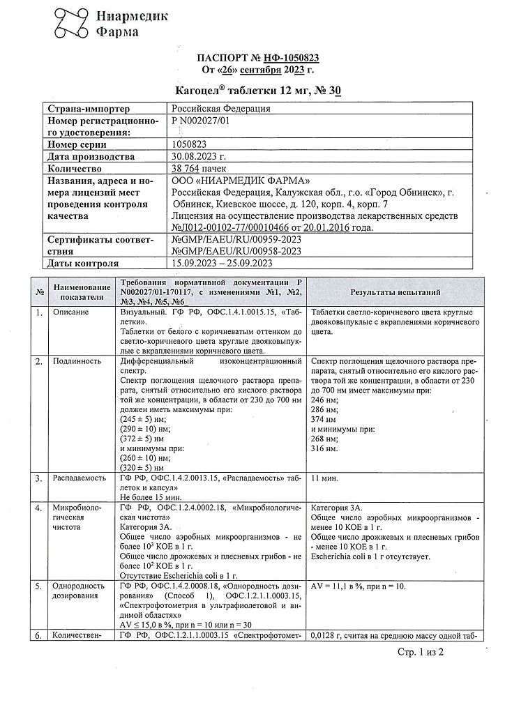 • Производителем Кагоцел является - Ниармедик Плюс
