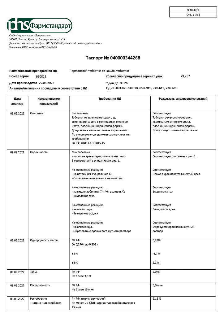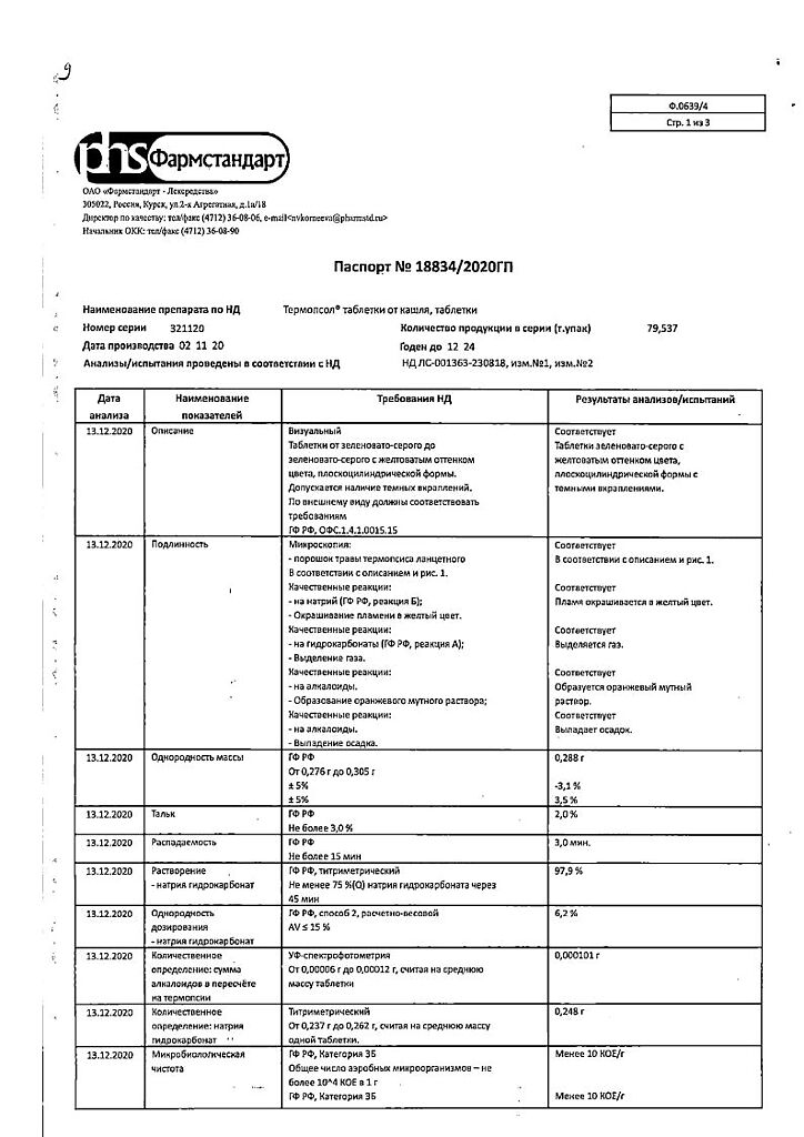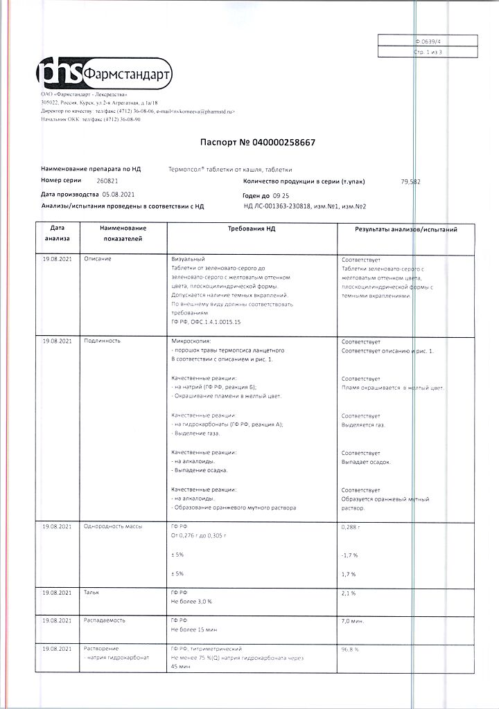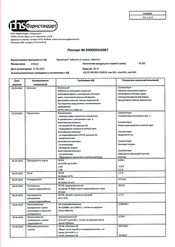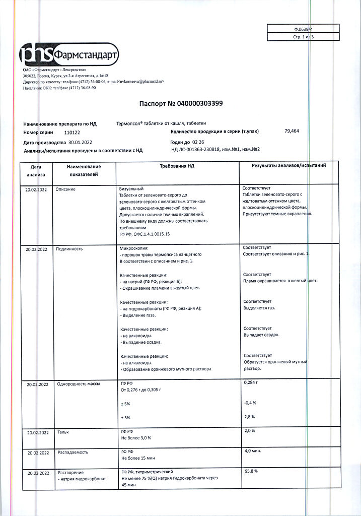 Действующее вещество: Термопсиса ланцетного трава, Натрия гидрокарбонат