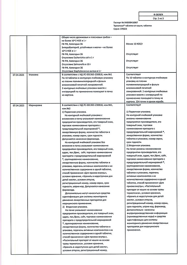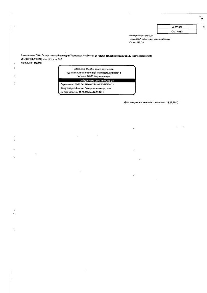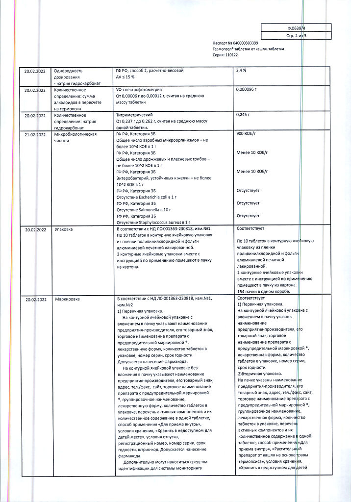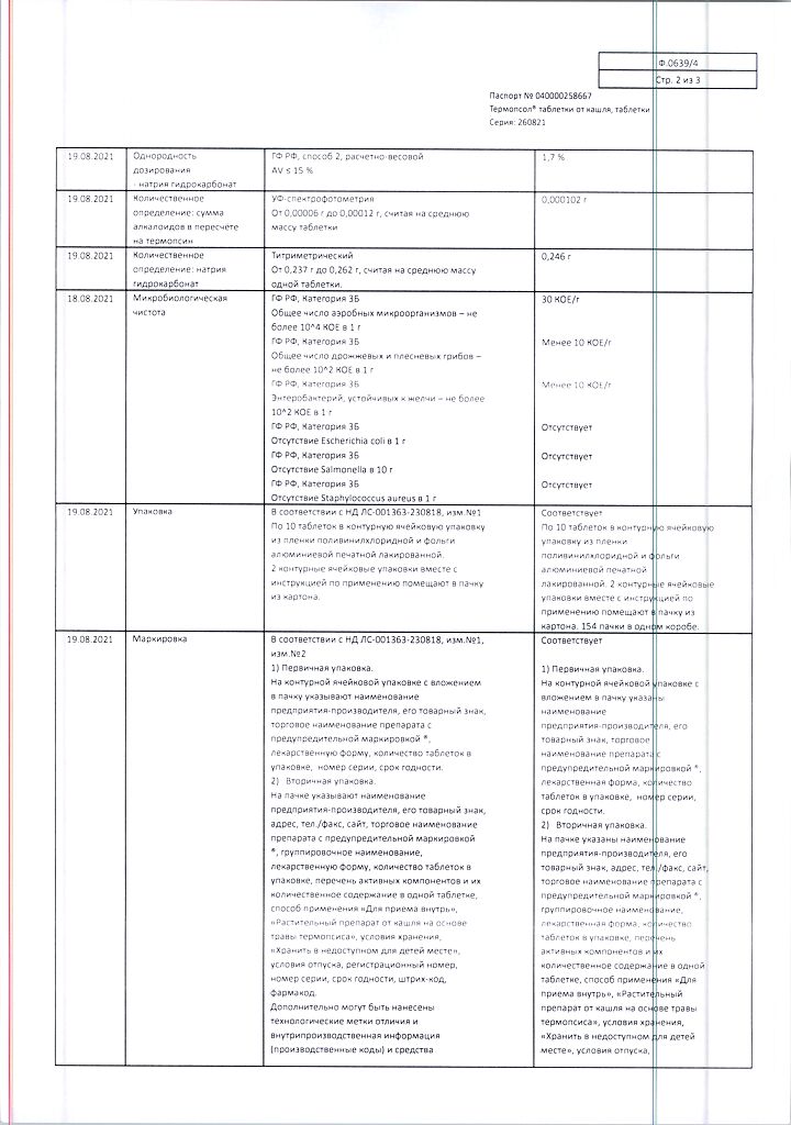 • 📒 Подробная инструкция по применению Термопсол таблетки от кашля 20 шт
