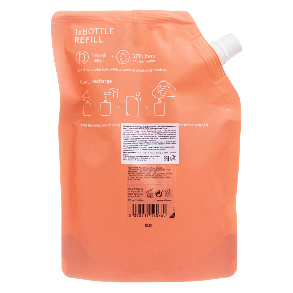 Жидкое мыло для рук HAAN с пребиотиками и Алоэ Вера Душистая вербена м/уп 350 мл 1 шт