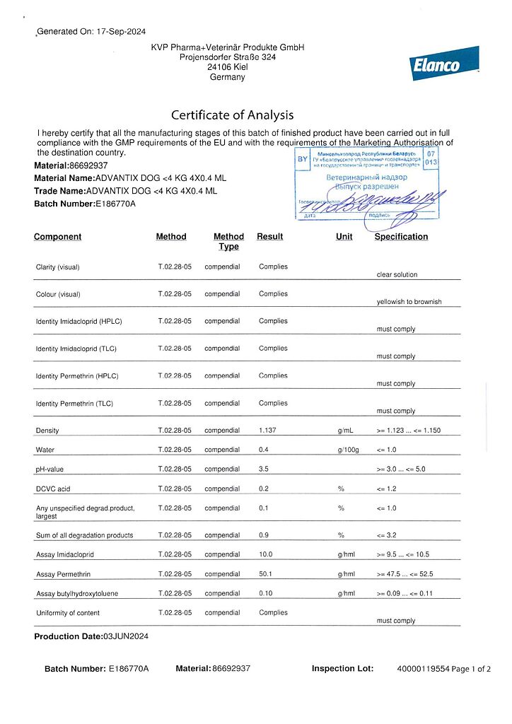 Производитель: КВП Фарма+Ветеринар Продукте ГмбХ, Германия