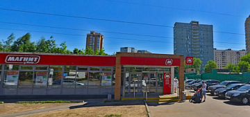 Первый вагон из центра, выходите на ст. м. Водный стадион. Выход №1 в сторону Кронштадтского бульвара, Авангардной ул. Из метро прямо к автобусной остановке. Вам нужны автобусы 65, 65к, 72, 139, 595. Едите до остановки "Академия туризма". Сразу за остановкой увидите "Магнит".