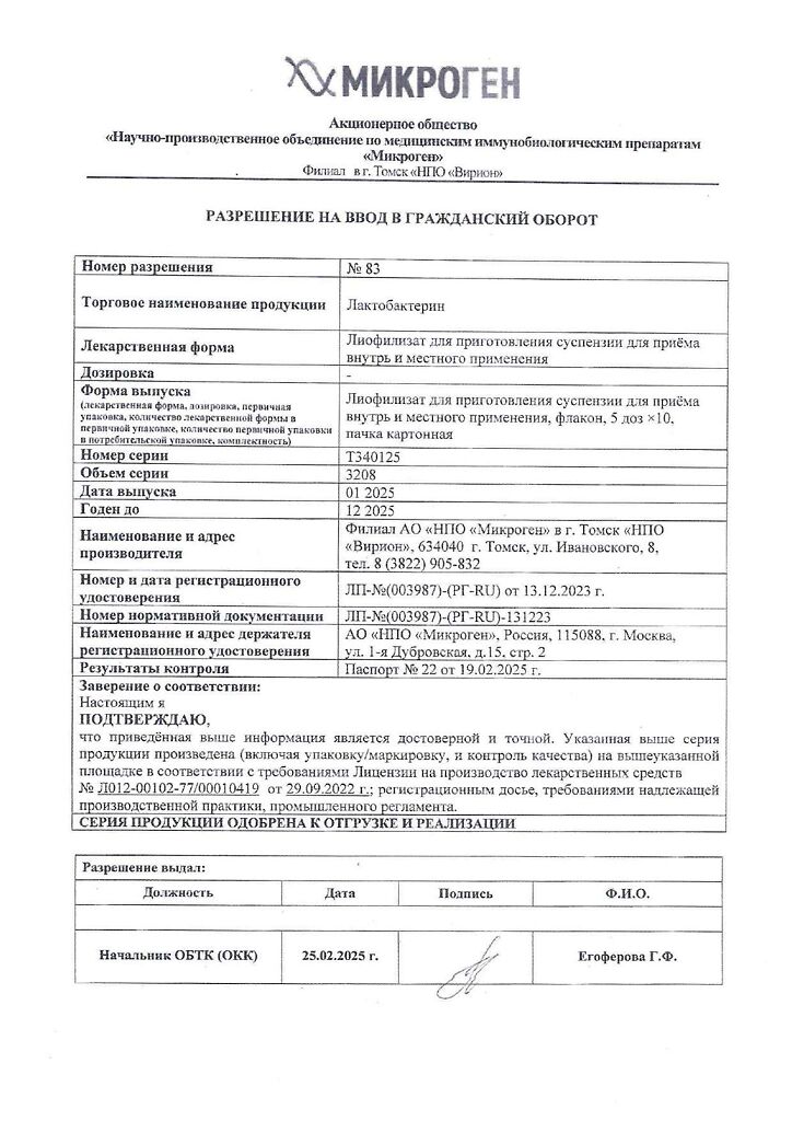 Бренд: Лактобактерин