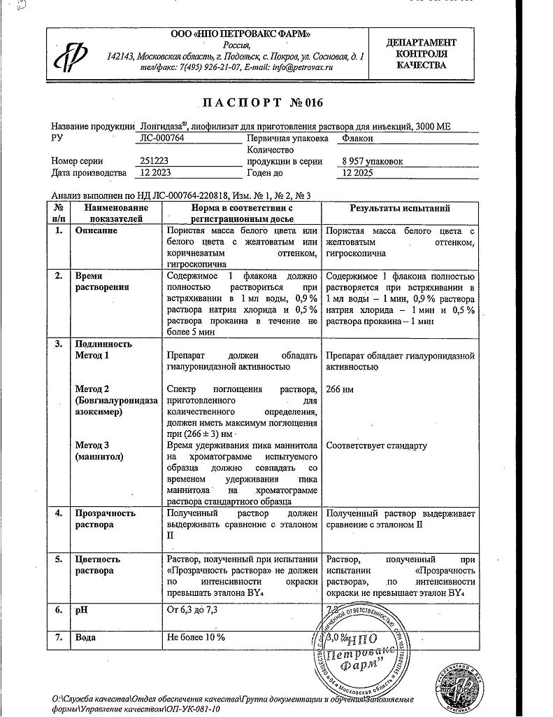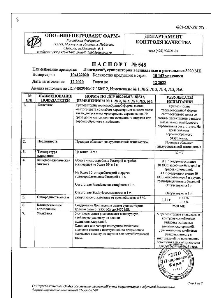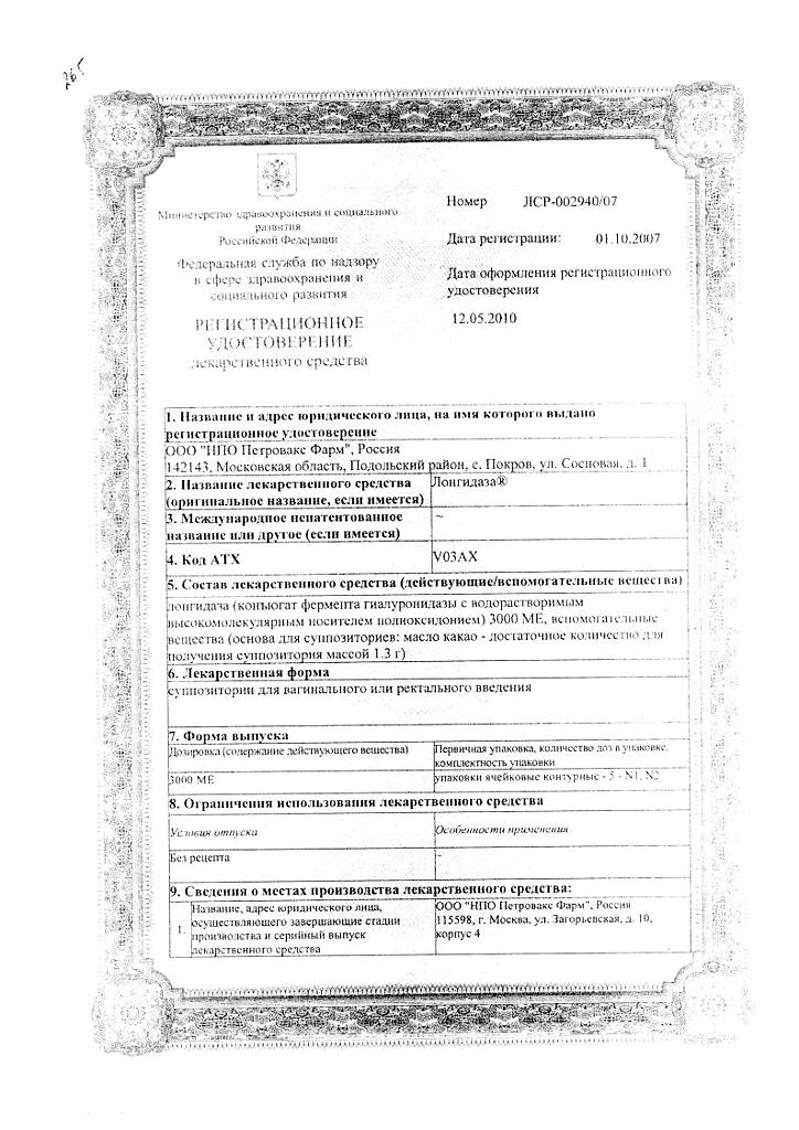 • Информацию об акциях и скидках на Лонгидаза уточняйте на нашем сайте.