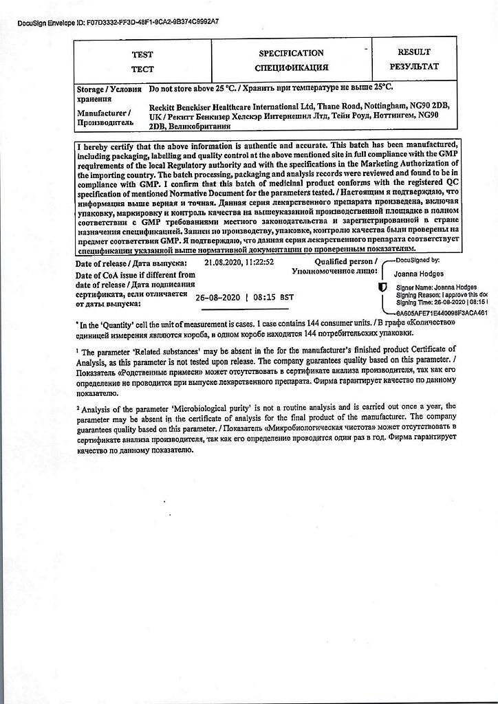Наличие сертификатов для каждого препарата
