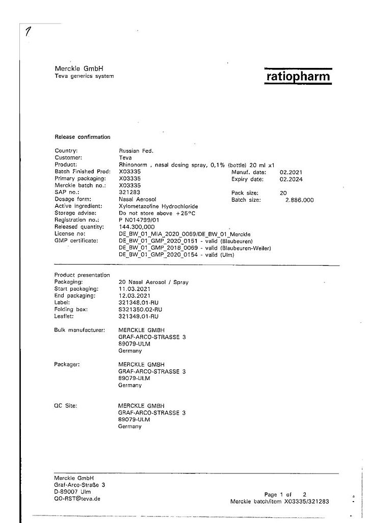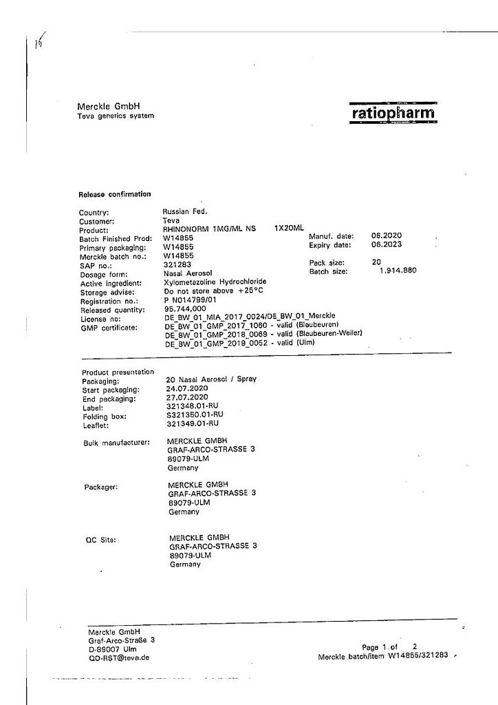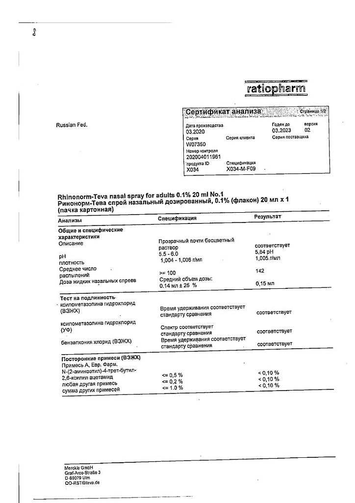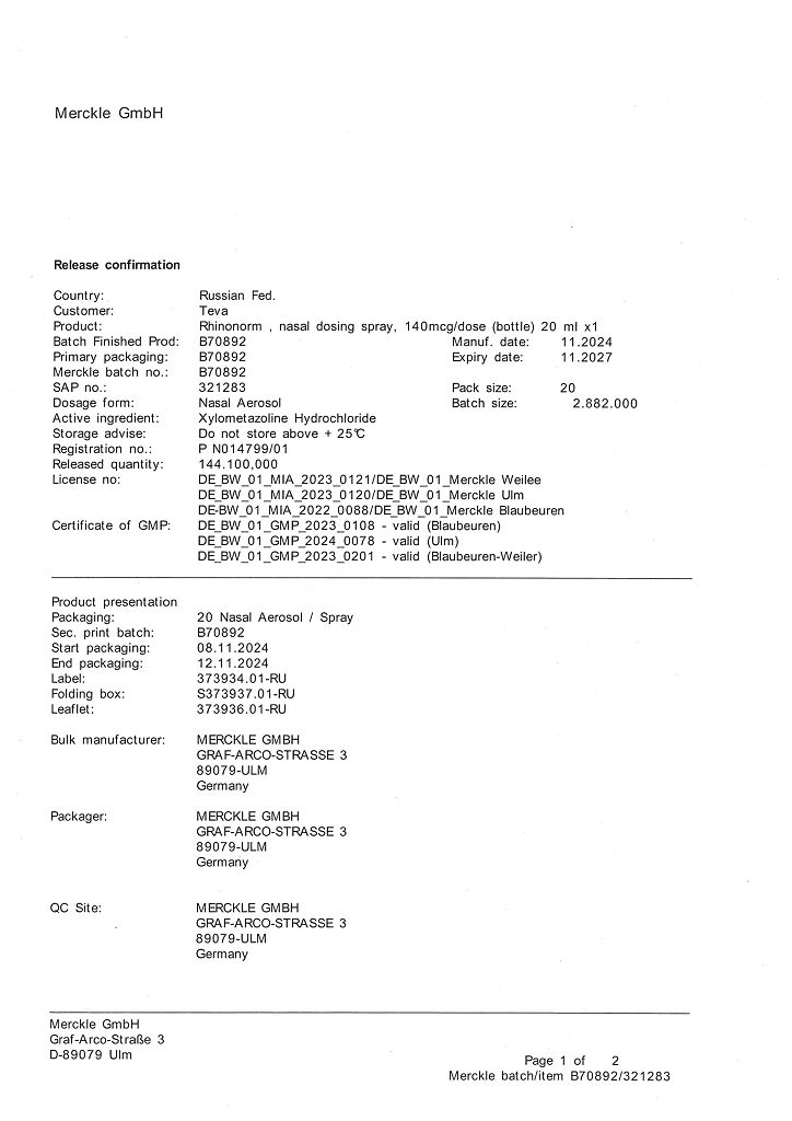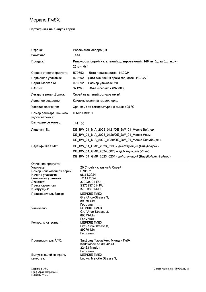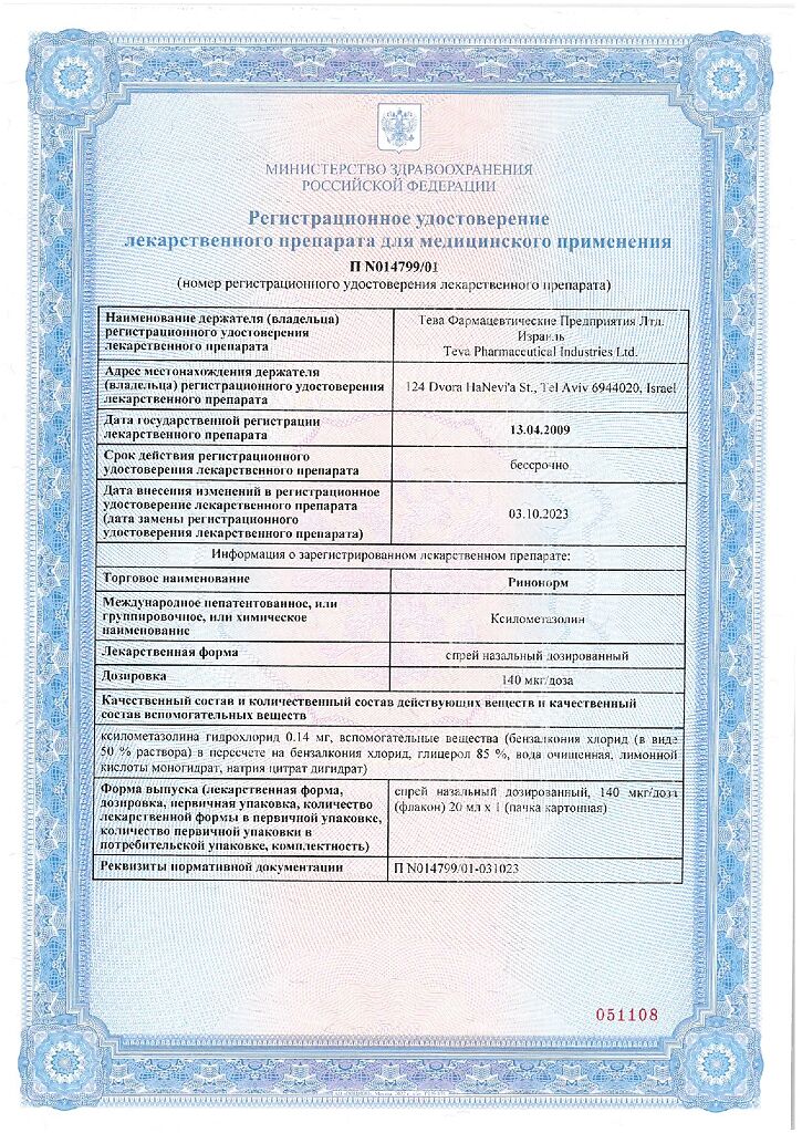 • Информацию об акциях и скидках на Ринонорм-Тева уточняйте на нашем сайте.