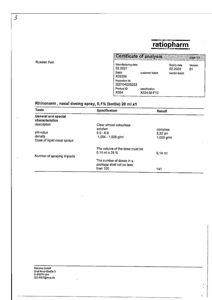 Ринонорм самое лучшее средство из аналогов. Во-первых цена более чем удовлетворительна и ниже чем аналоги. Во-вторых испробовав все и сравнив действие могу сказать одно из всех схожих по составу он единственный который не сушит слизистую!!! Проверено временем! В-третьих его используешь на 2/3 меньш ... е чем аналоги. От этого следует что его хватает на ОЧЕНЬ долго. И последнее, немаловажное. Он чуть ли не единственный из всех схожих по составу от которого нет побочных головных болей. У других доказано и тоже проходили, проверено. Спасибо нашему производителю за качественный продукт. Ещё