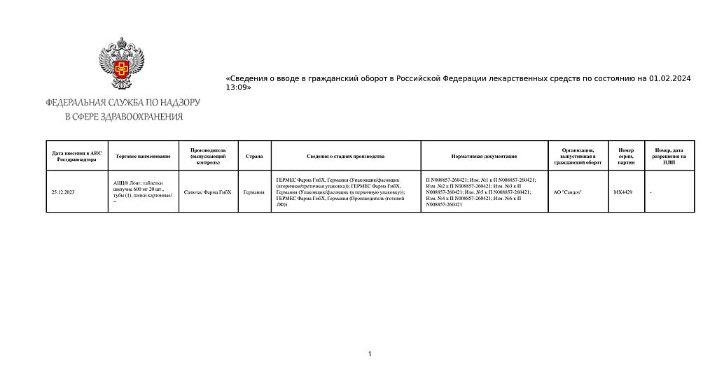 Страница носит информационный характер о наличии препаратов. Перед назначением и применением проконсультируйтесь с врачом