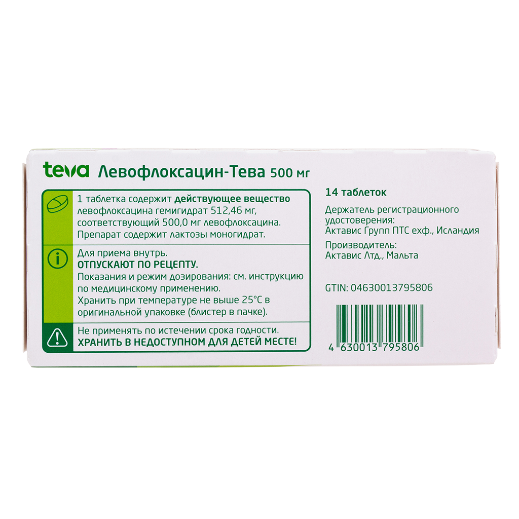 • Срок годности Левофлоксацин-Тева - 3 года.