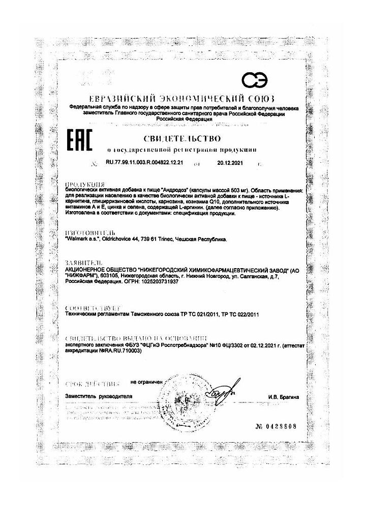 АндроДоз предназначен для лечения мужской субфертильности, улучшения качества и оплодотворяющей способности спермы, повышает криотолерантность спермы.