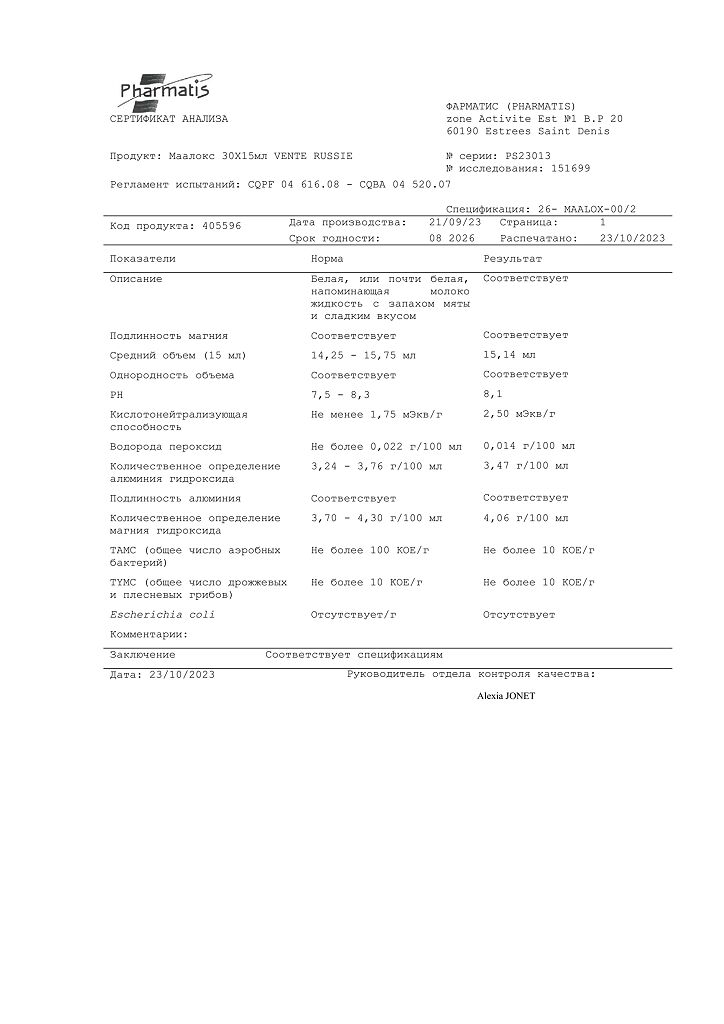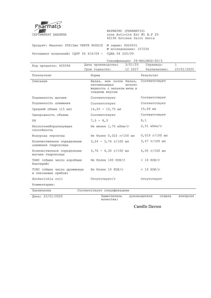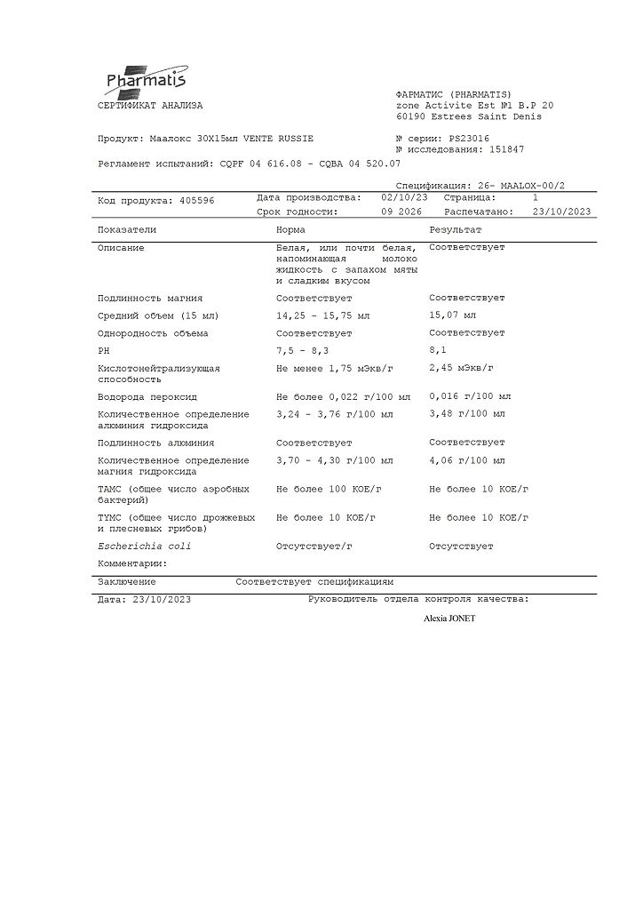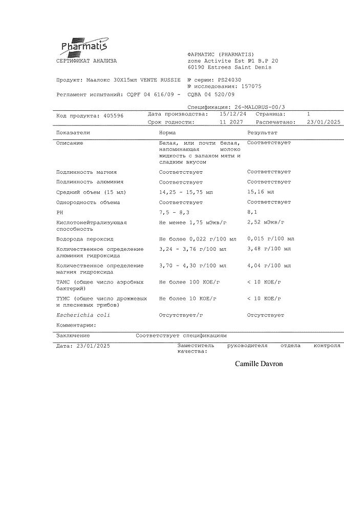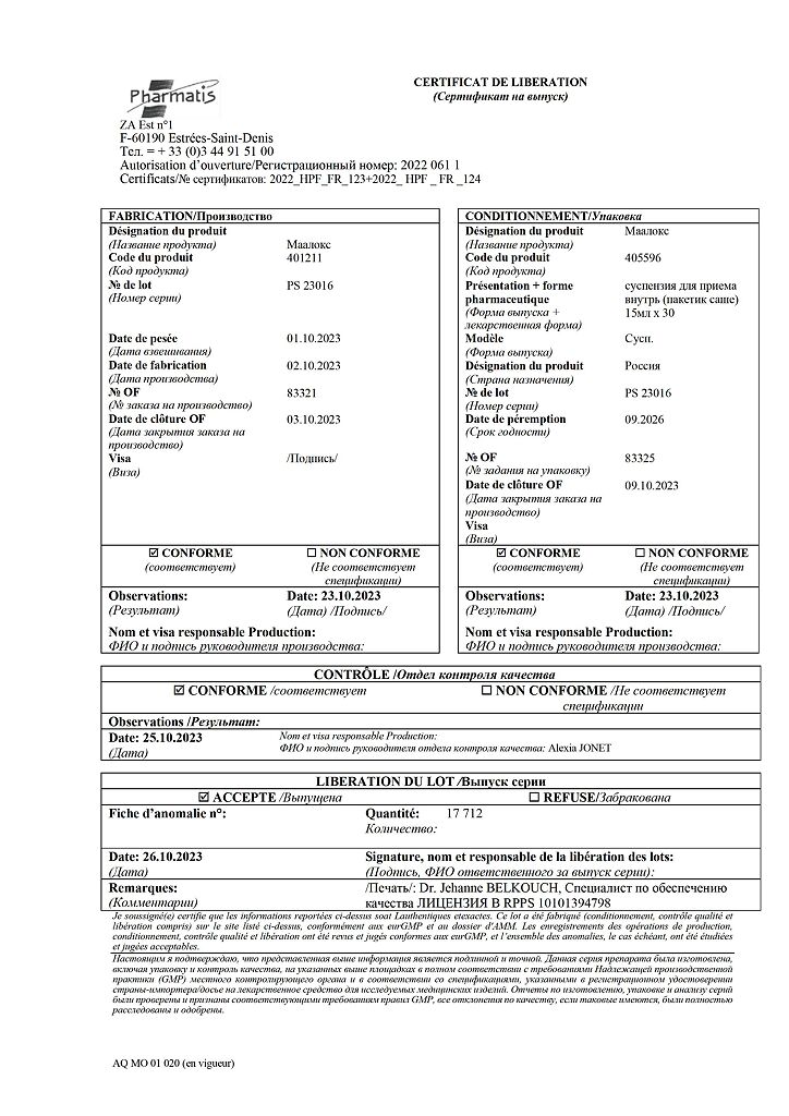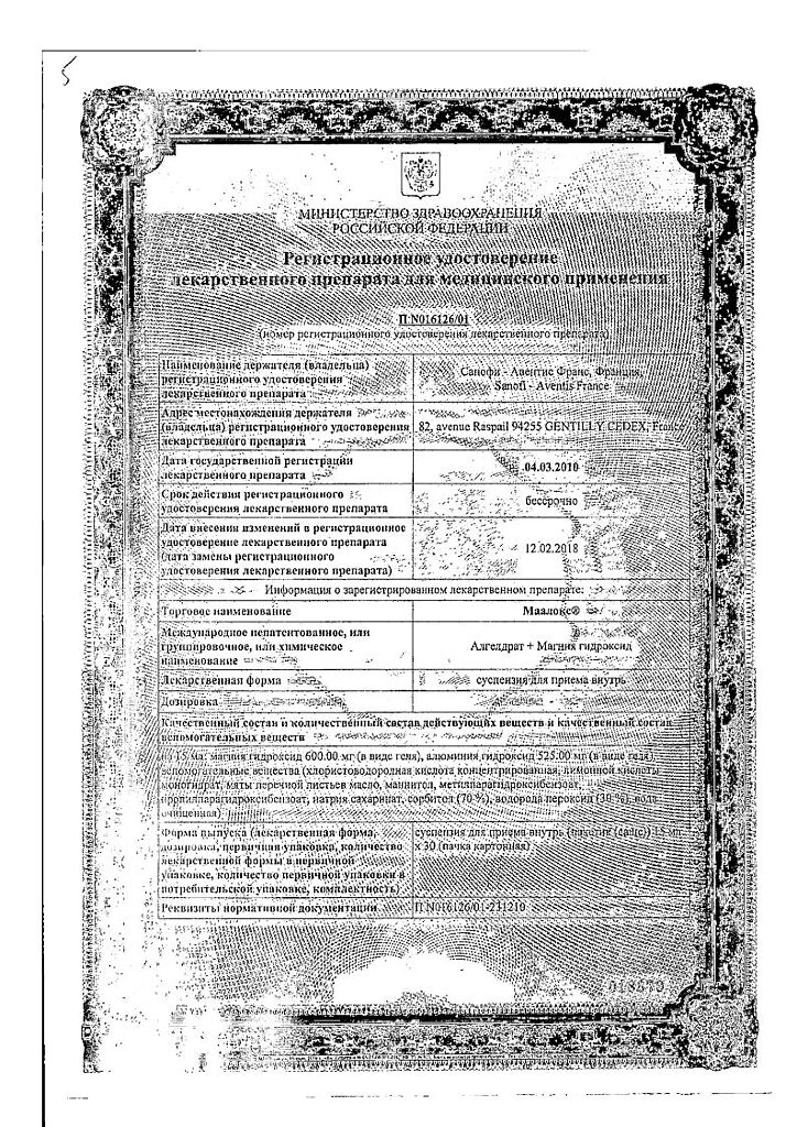 Действующее вещество: Алгелдрат, Магния гидроксид