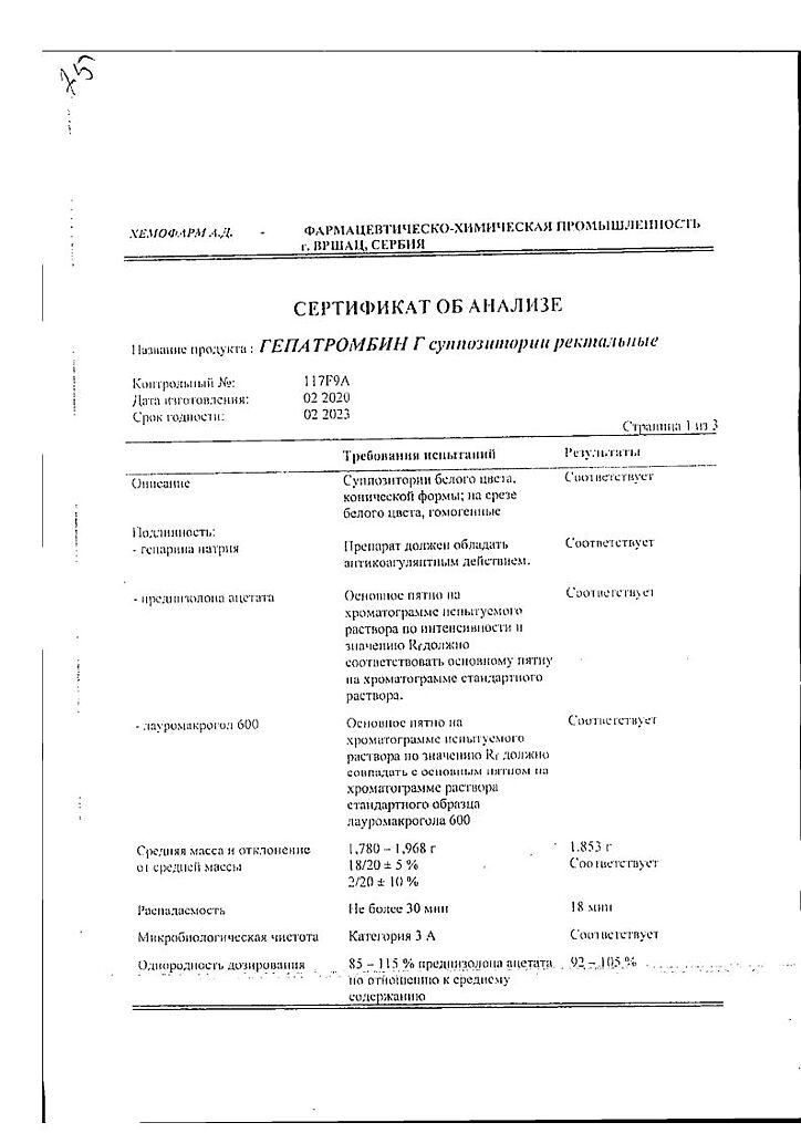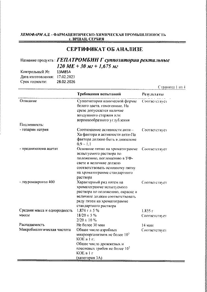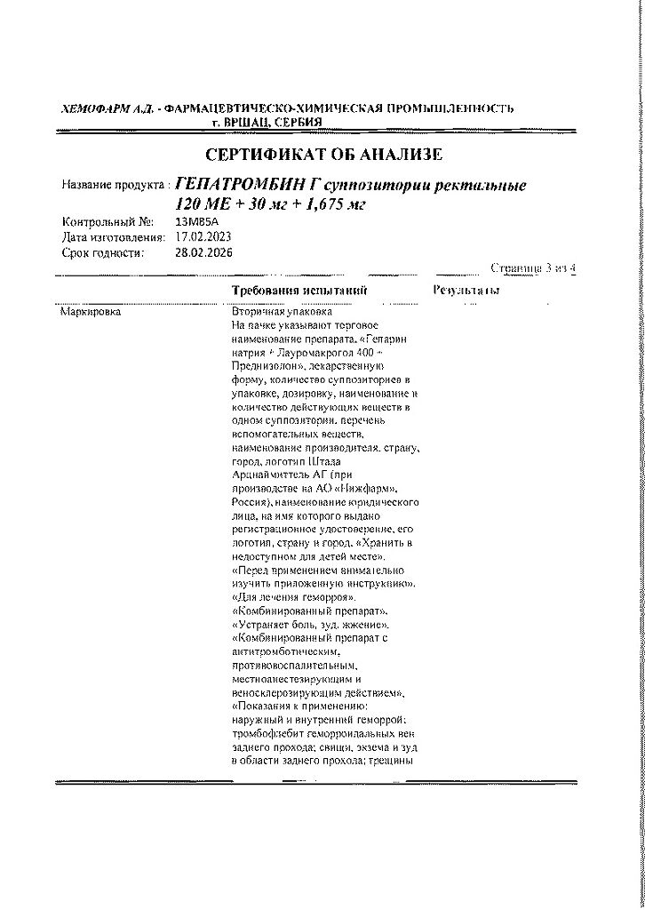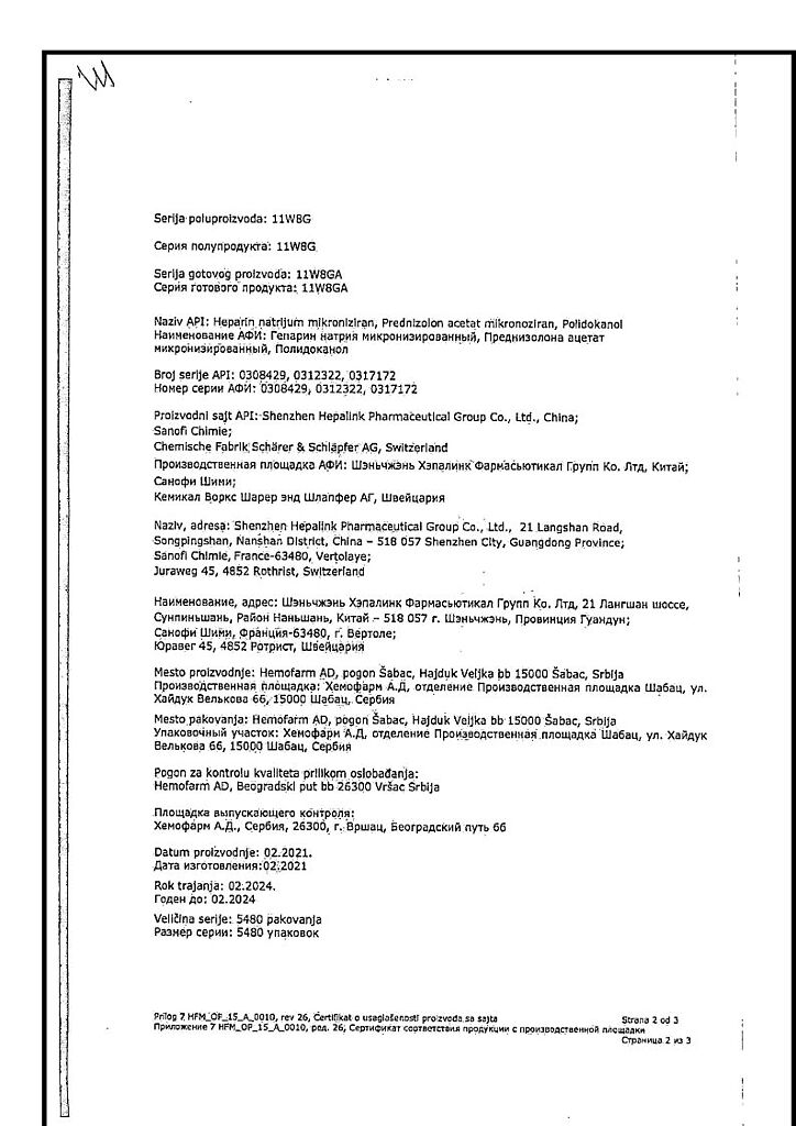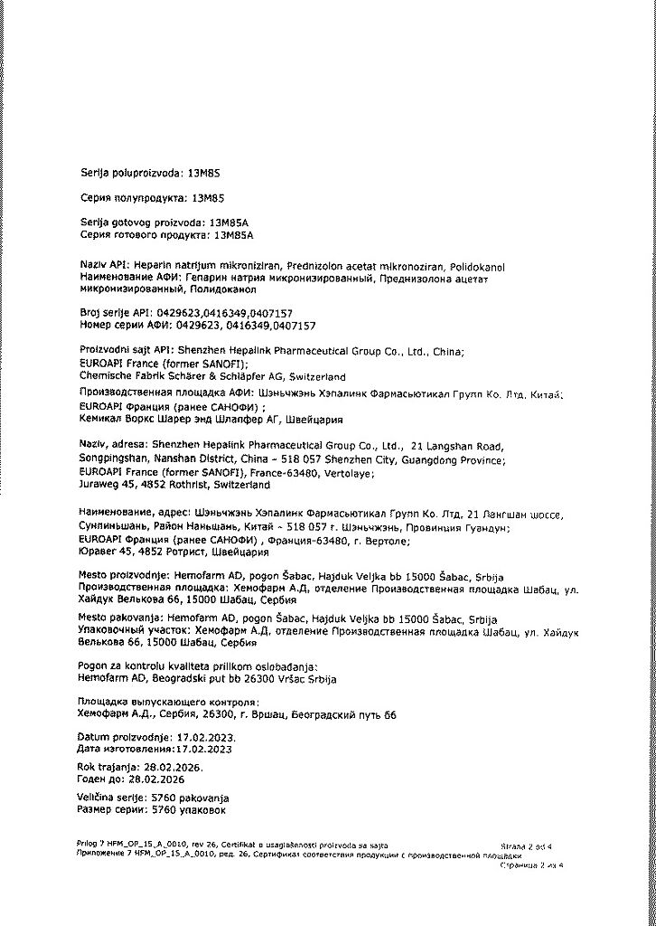 Действующее вещество: Гепарин натрия, Лауромакрогол 400, Преднизолон