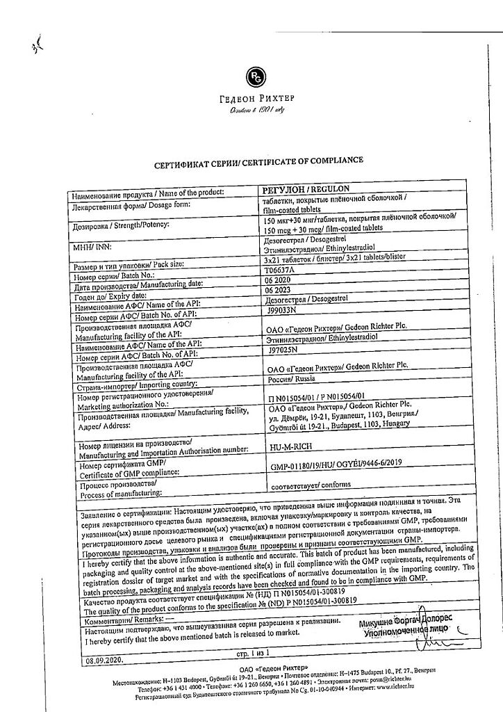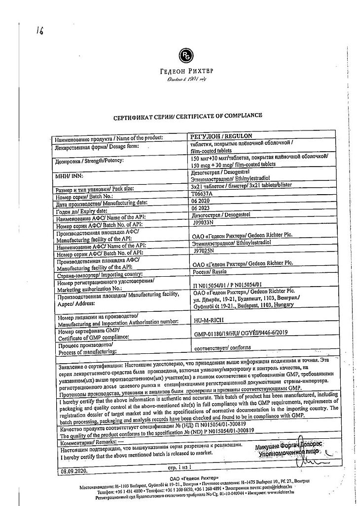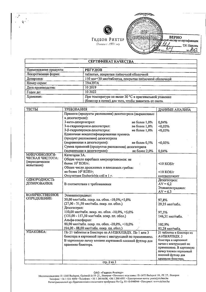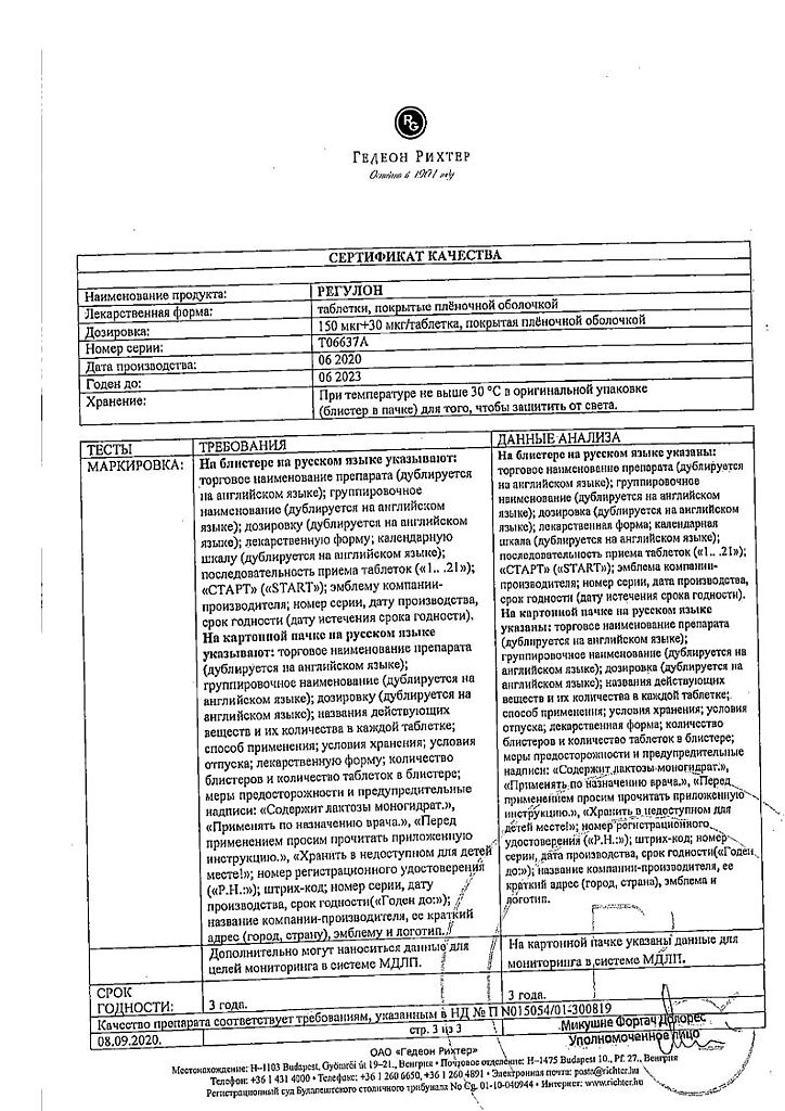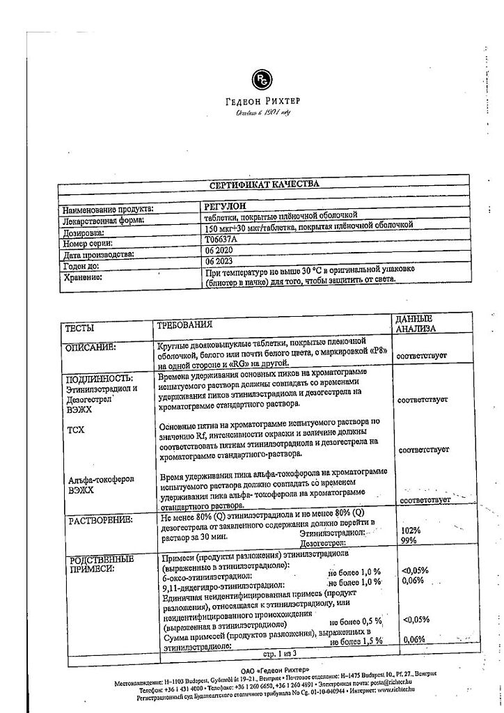 Действующее вещество: Дезогестрел, Этинилэстрадиол