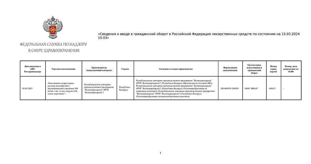 Страница носит информационный характер о наличии препаратов. Перед назначением и применением проконсультируйтесь с врачом