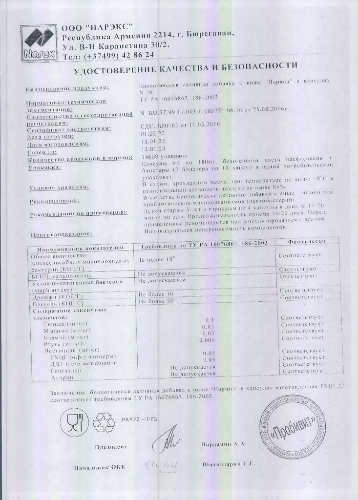 Производитель: Нарэкс, Армения
