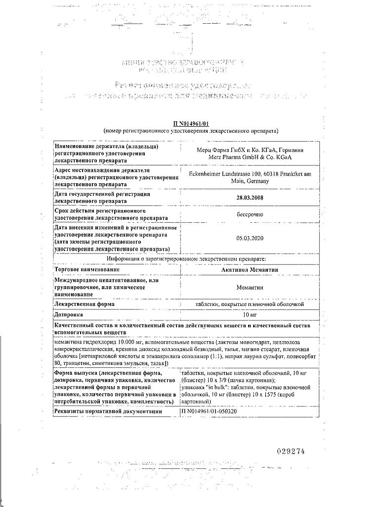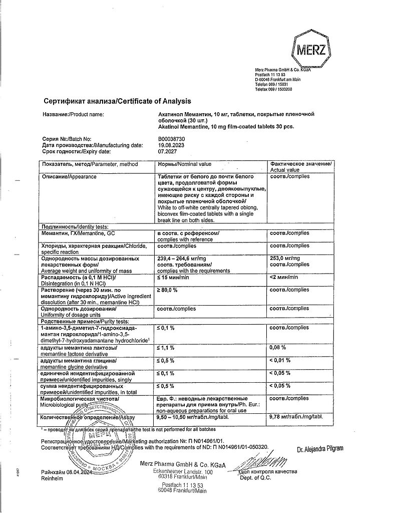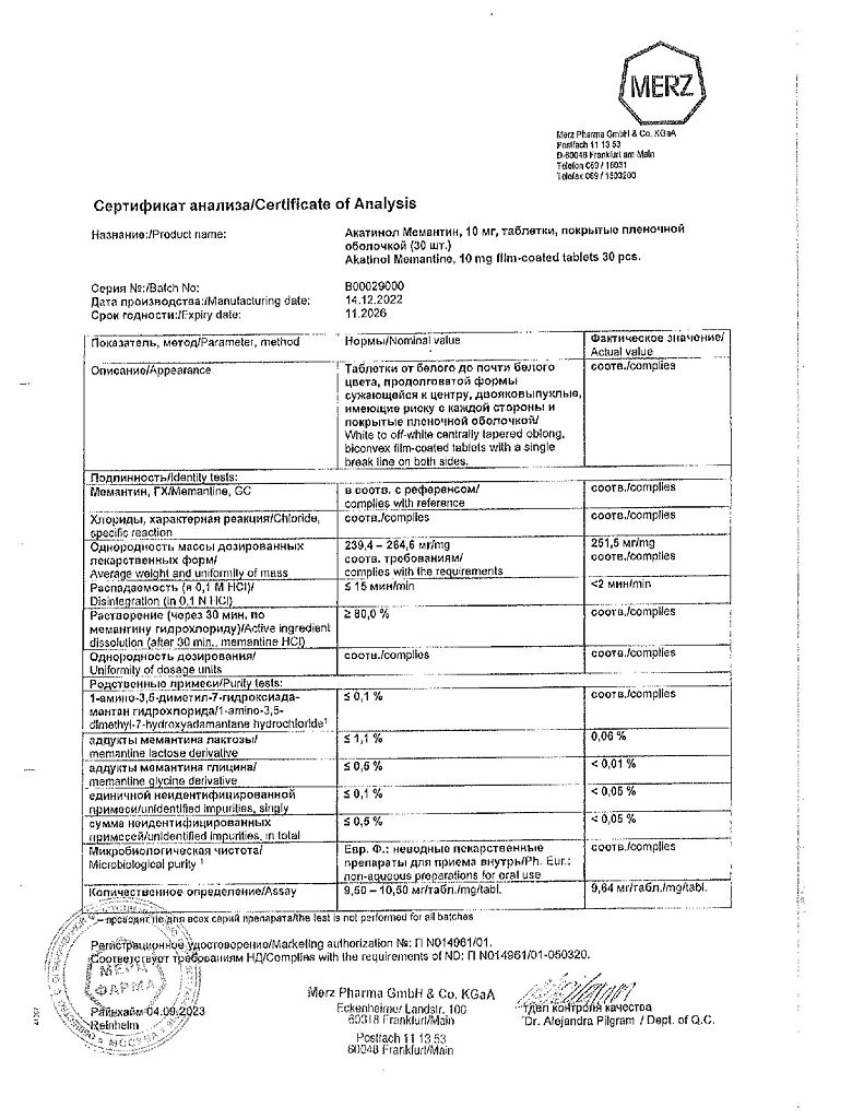 Бренд: Акатинол Мемантин