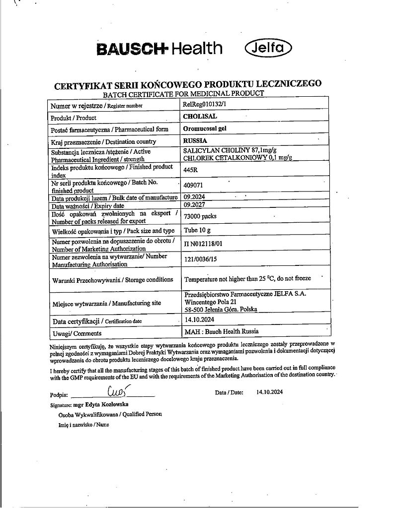 Действующее вещество: Холина салицилат, Цеталкония хлорид