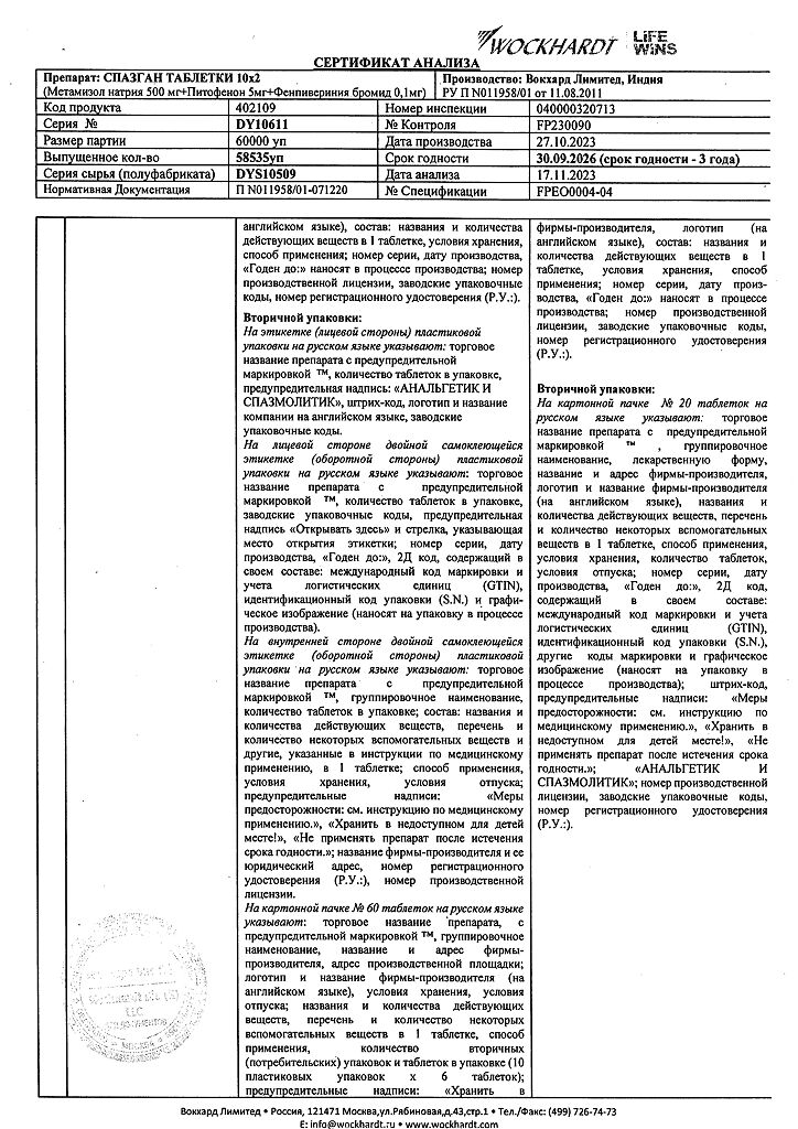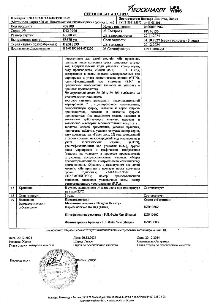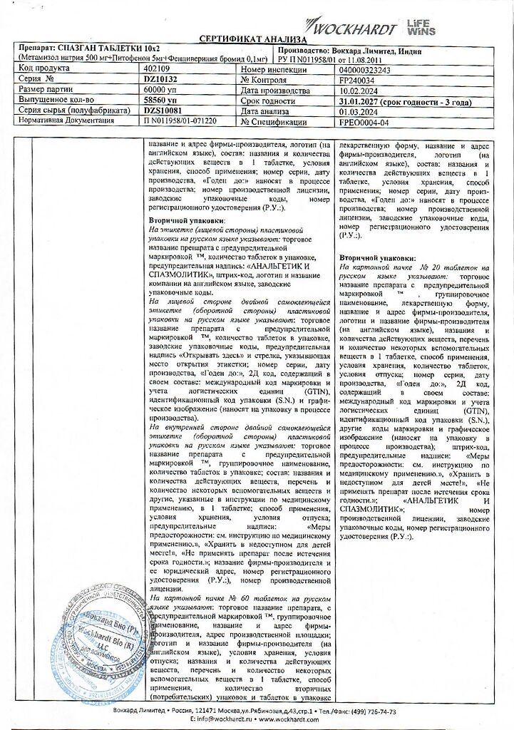 Барбитураты, фенилбутазон и другие индукторы микросомальных ферментов печени ослабляют действие метамизола. Одновременное применение с циклоспорином снижает уровень последнего в крови. Седативные средства и транквилизаторы усиливают обезболивающее действие Спазгана.