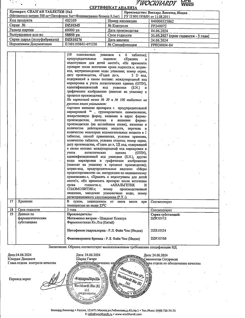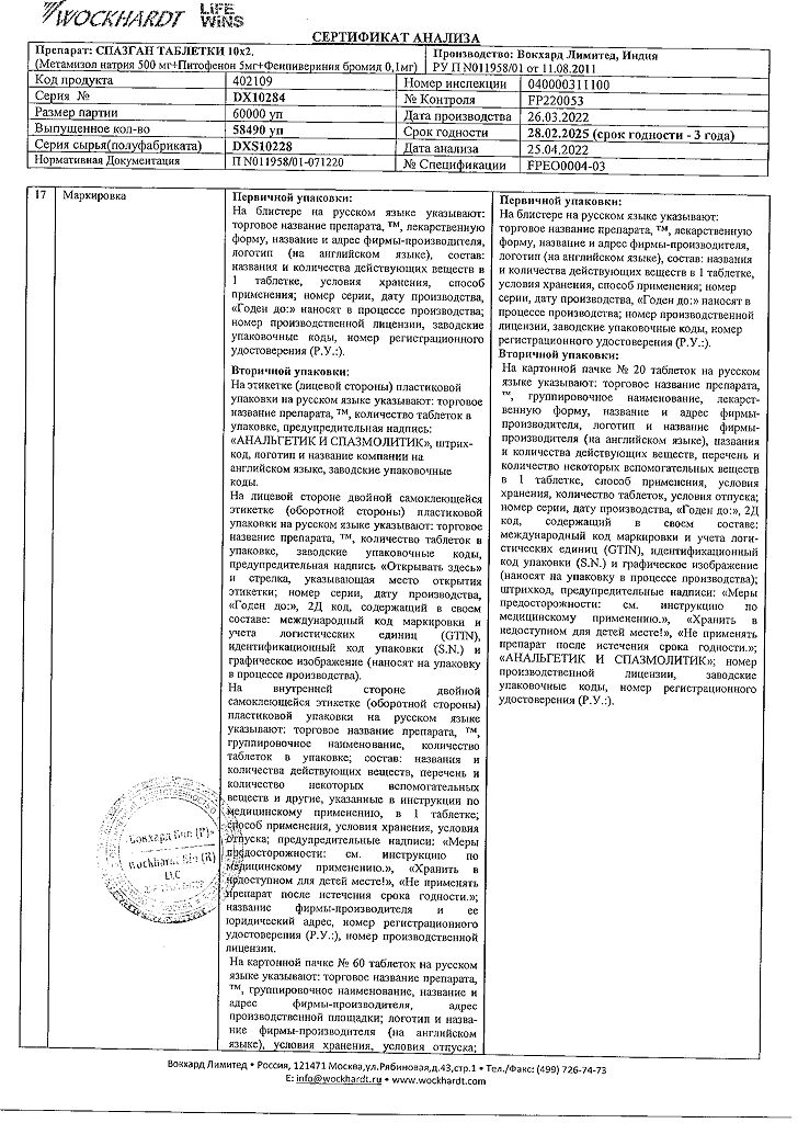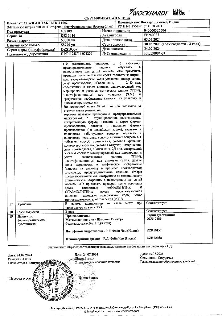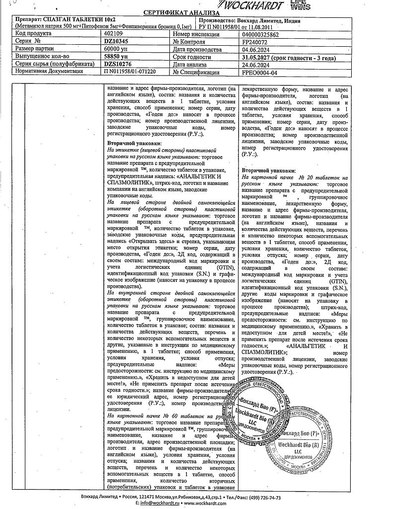 Действующее вещество: Метамизол натрия, Питофенон, Фенпивериния бромид