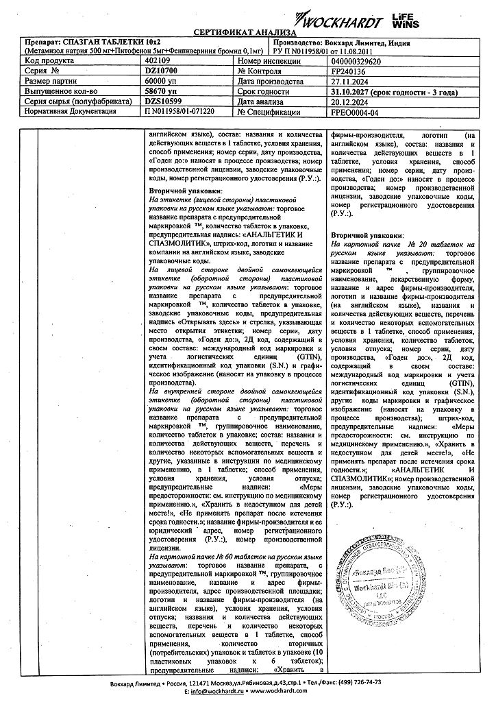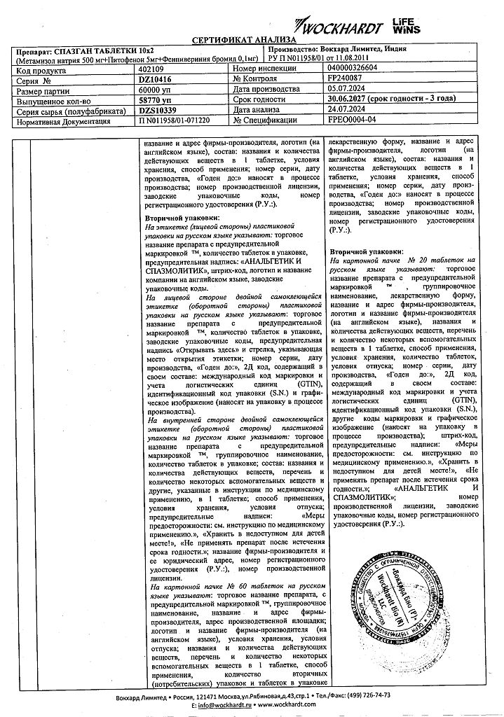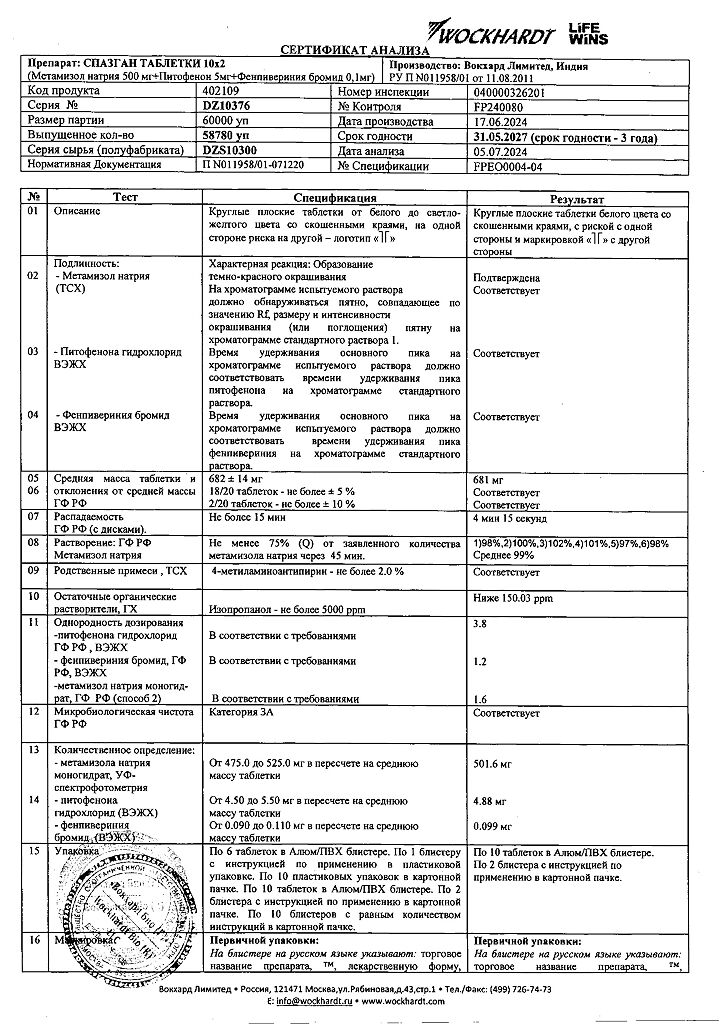 взрослым назначается по 1-2 таб. Спазган до 4 раз в сут.