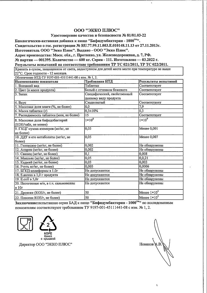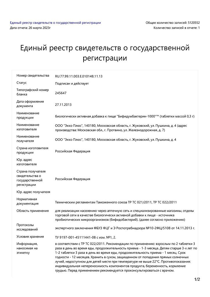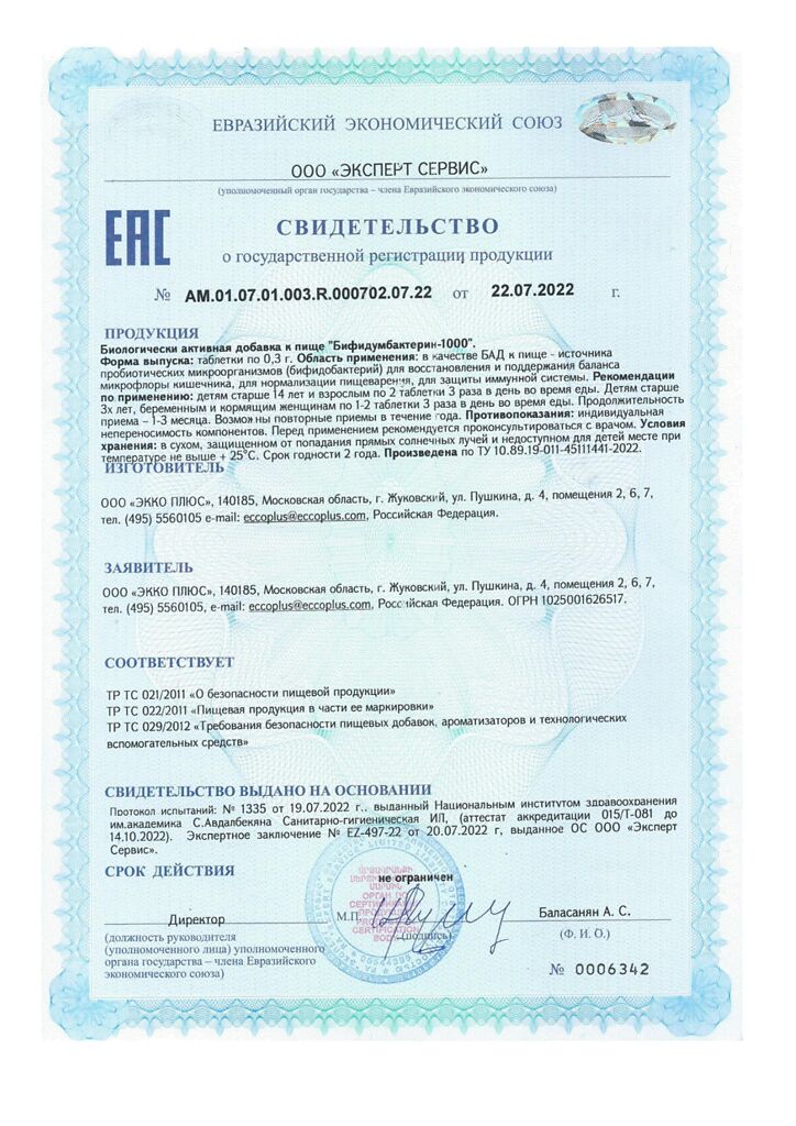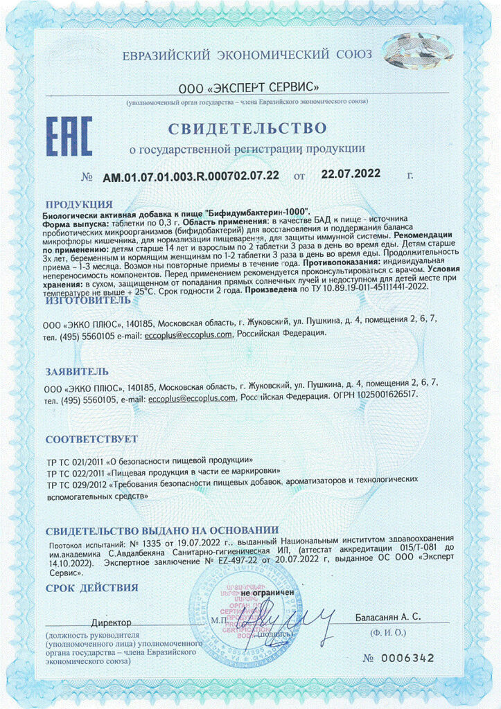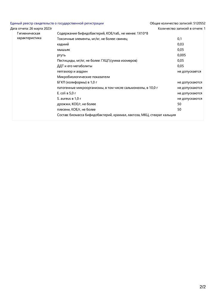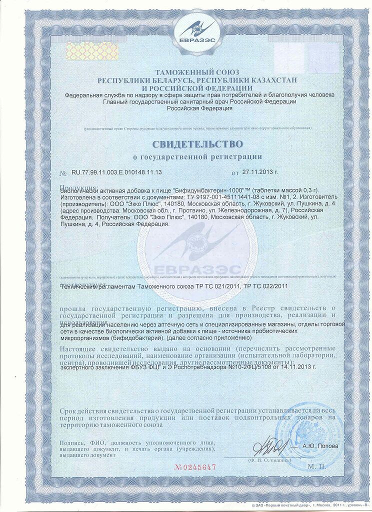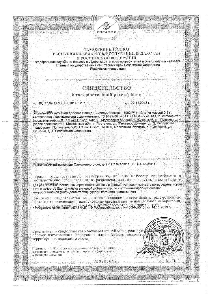 Документы Бифидумбактерин 1000 таблетки по 0,3 г 30 шт