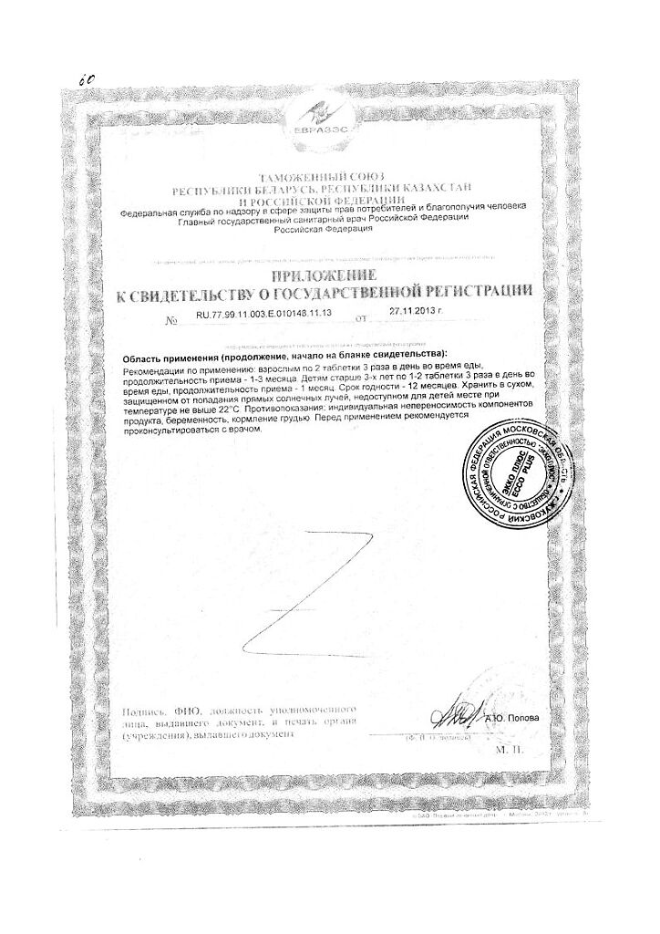 Детям старше 14 лет и взрослым по 2 таблетки 3 раза в день во время еды. Детям старше 3-х лет, беременным и кормящим женщинам по 1-2 таблетки 3 раза в день во время еды. Продолжительность приема - 1-3 месяца. Возможны повторные приемы в течение года.