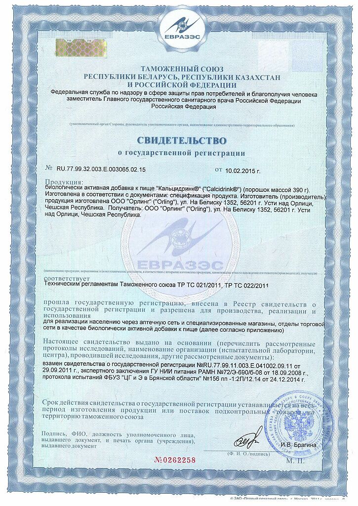 Документы Кальцидринк / Calcidrink порошок массой 390 г мандарин