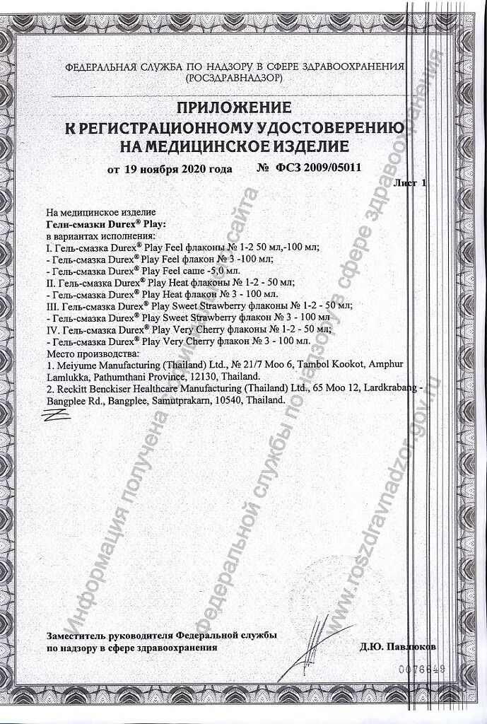 Документы Гель-смазка Durex Play Heat 50 мл 1 шт