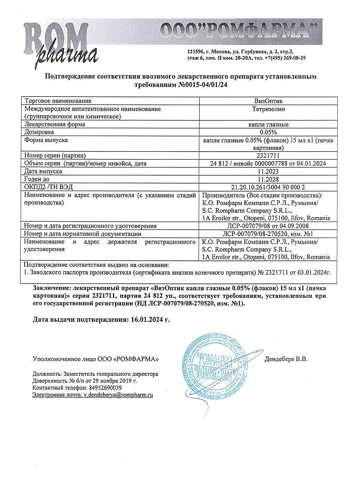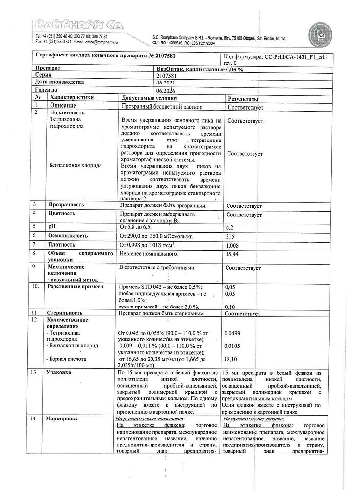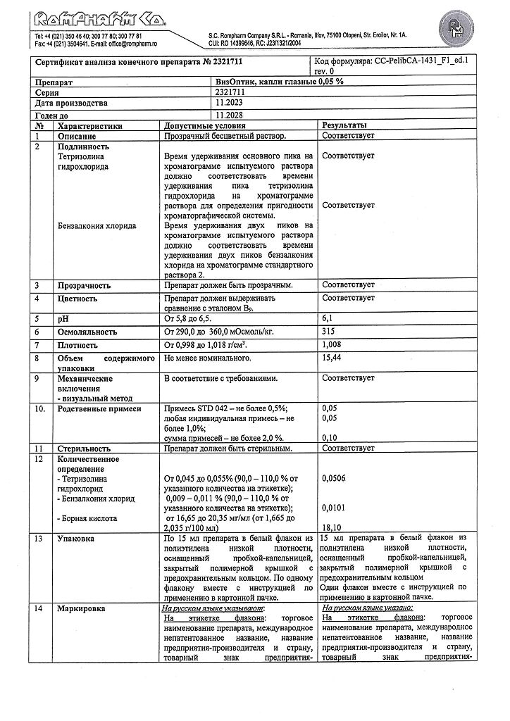 ВизОптик капли глазные 0,05 % 15 мл 1 шт: 7 отзывов покупателей и фармацевтов