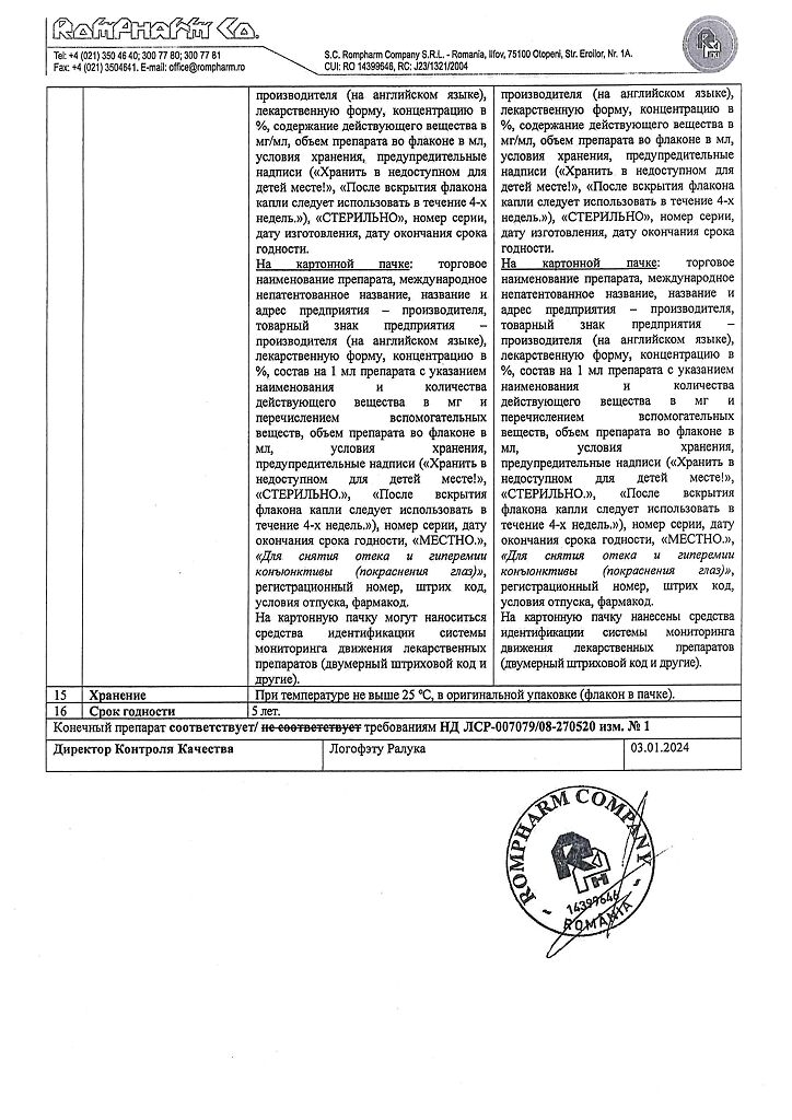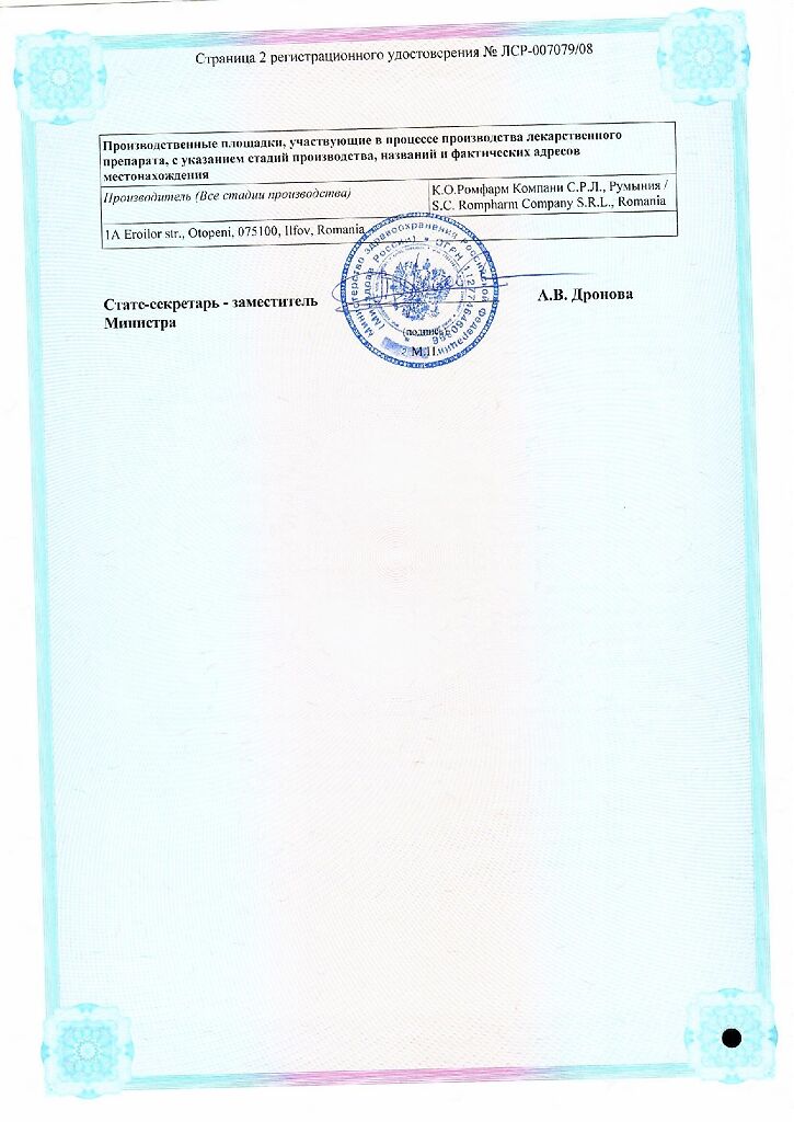 Производитель: К.О.Ромфарм Компани С.Р.Л., Румыния