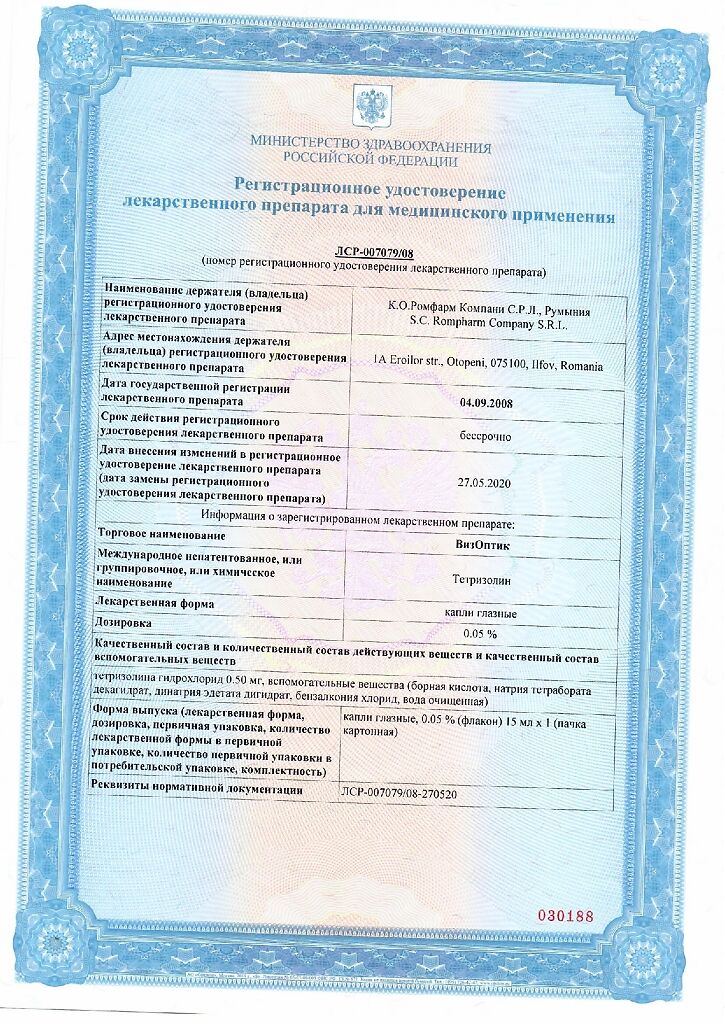 Документы ВизОптик капли глазные 0,05 % 15 мл 1 шт