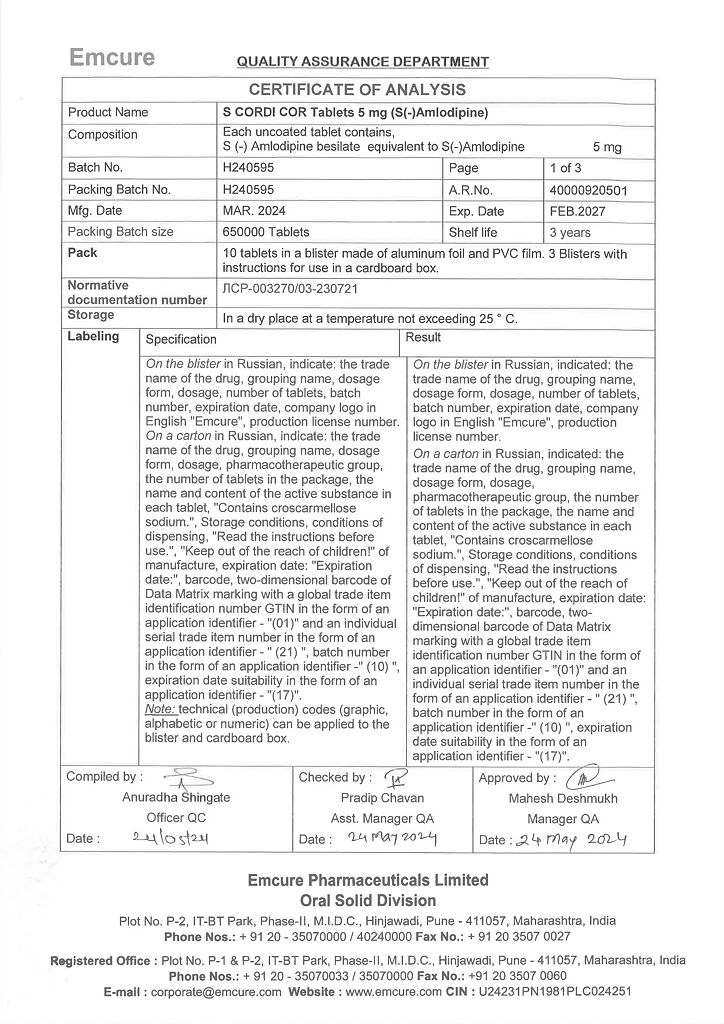 Производитель: Эмкюр Фармасьютикалз Лтд, Индия