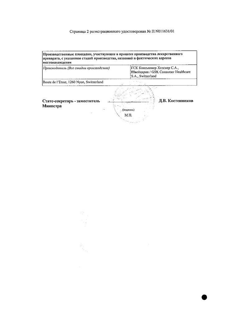 Производитель: ГСК Консьюмер Хелскер С.А., Швейцария