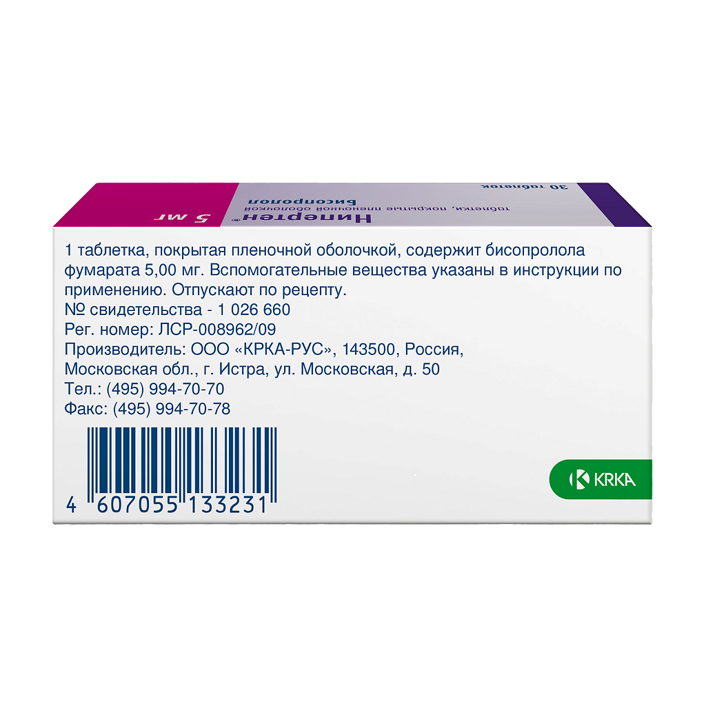 Бисопролол не обладает выраженным отрицательным инотропным действием. Максимальный эффект препарата достигается через 3-4 часа после приема внутрь. Даже при применении бисопролола 1 раз в сутки его терапевтический эффект сохраняется в течение 24 часов благодаря 10-12-часовому периоду полувыведения (T1/2) из плазмы крови. Как правило, максимальное снижение артериального давления (АД) достигается через 2 недели после начала лечения.