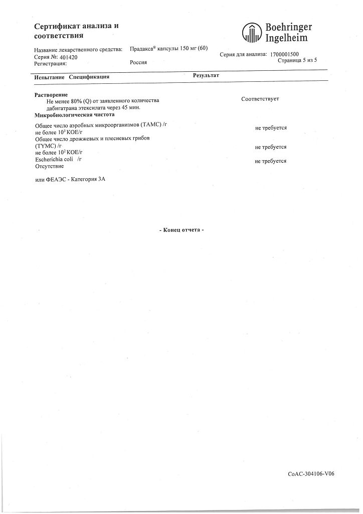 При передозировке препарата ПРАДАКСА возможно использование концентратов активированного протромбинового комплекса или рекомбинантного фактора VIIa или концентратов II, IX или X факторов свертывания. Существуют экспериментальные данные, подтверждающие эффективность этих средств в противодействие антикоагулянтному эффекту дабигатрана, однако специальных клинических исследований не проводилось.