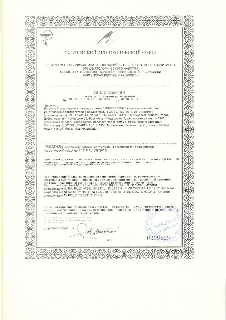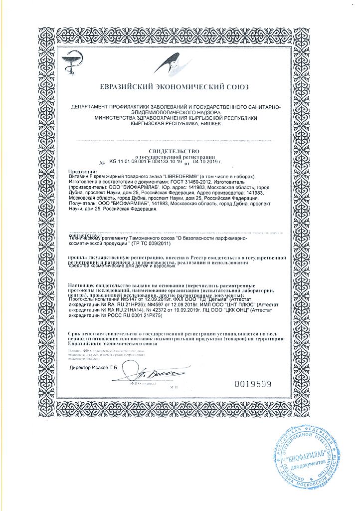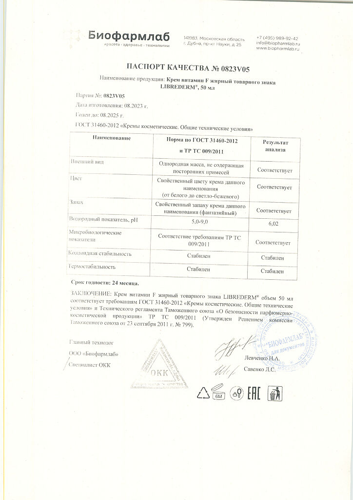 Витамин F (комплекс полиненасыщенных жирных кислот) эффективен при кожных раздражениях различного происхождения: шелушении, покраснении, трещинах, сухости. Ускоряет эпителизацию (заживление), оказывает мощное бактерицидное и антивоспалительное действие. Повышает защитные свойства кожи к воздействию неблагоприятных факторов внешней среды. Предотвращает увядание и старение кожи.